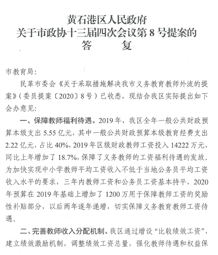 关于市政协十三届四次会议第8号提案的答复