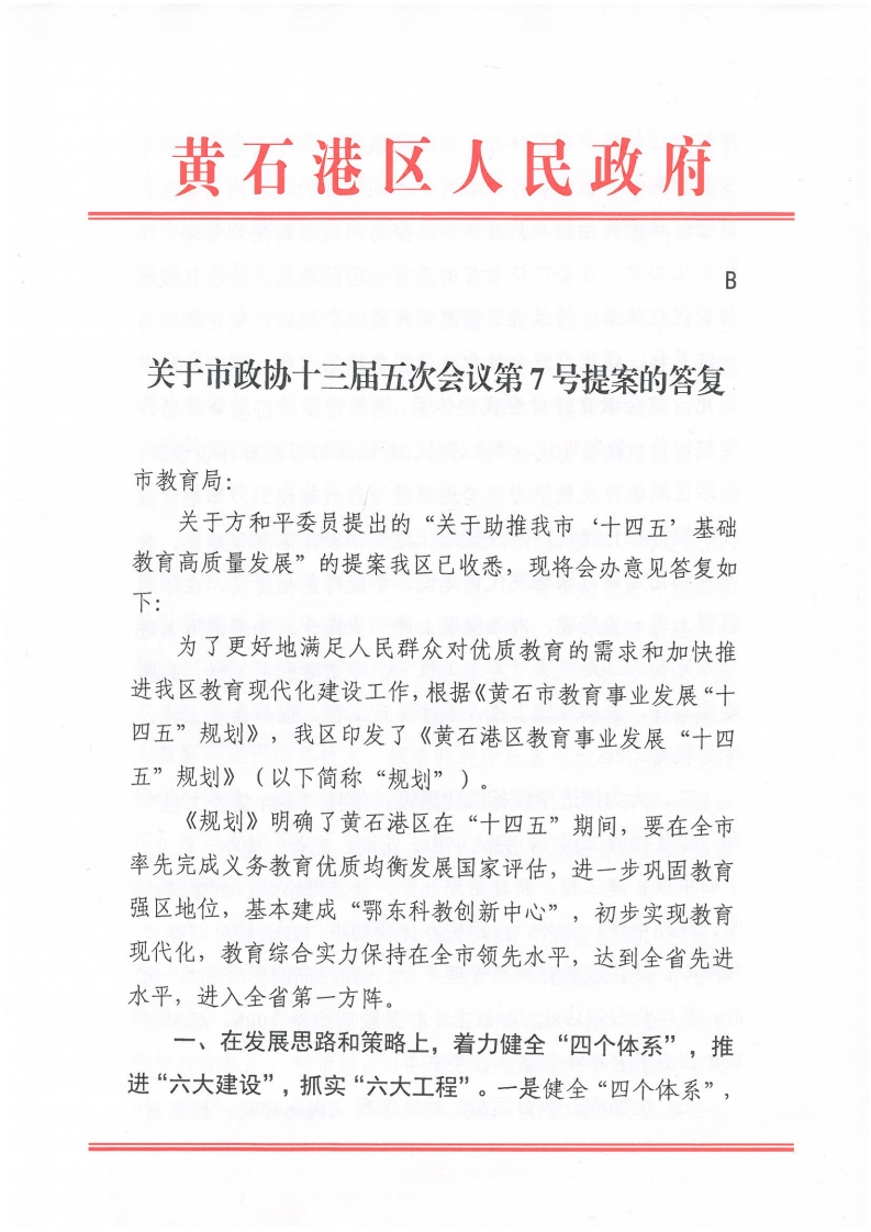 关于市政协第十三届五次会议第7号提案的答复