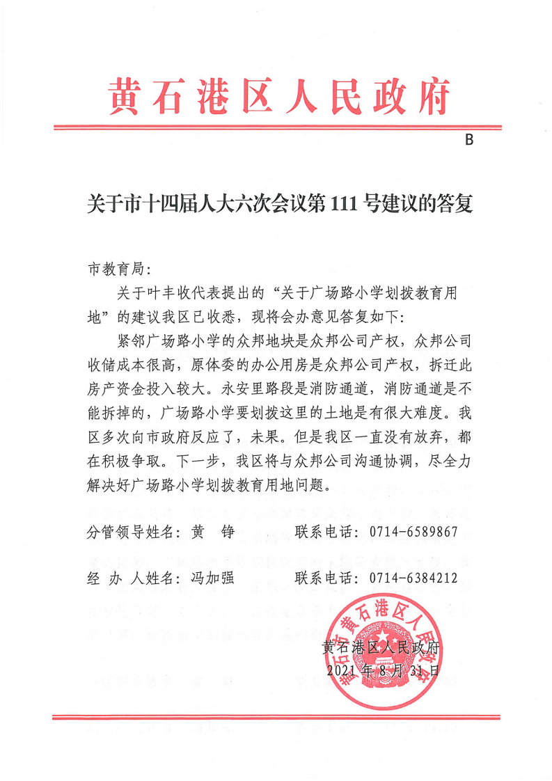 关于市十四届人大六次会议第111号建议的答复