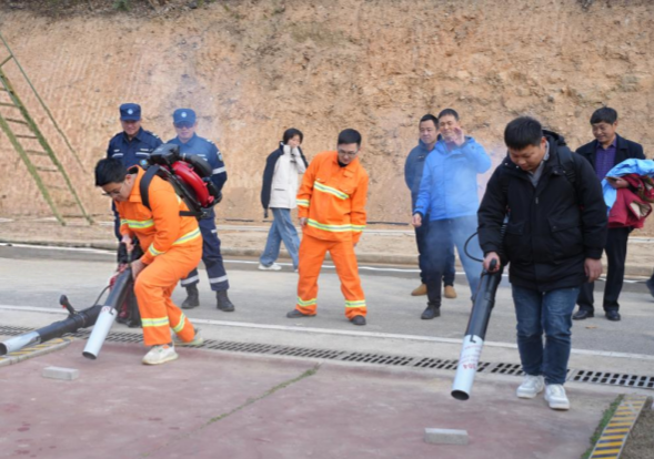 水泵接力注水项目中,队员们默契配合,迅速完成取水管接力流程,整个环节行云流水。风力灭火机操作接力项目的比拼同样精彩,队员们携带设备迅速启动风力灭火机往返,动作规范娴熟,接力衔接顺畅。