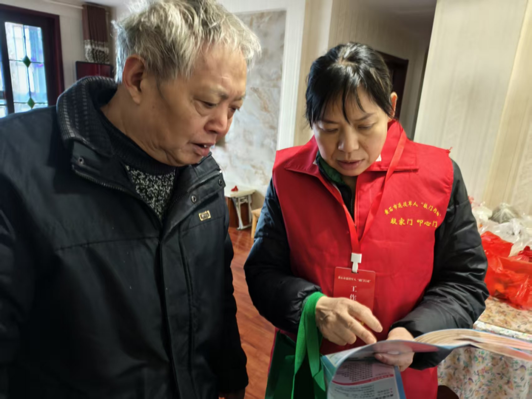春节前夕,青山湖社区网格员身着“志愿红”马甲,携带《“敲门行动”服务手册》与“联系卡”,逐户走访辖区退役军人家庭。