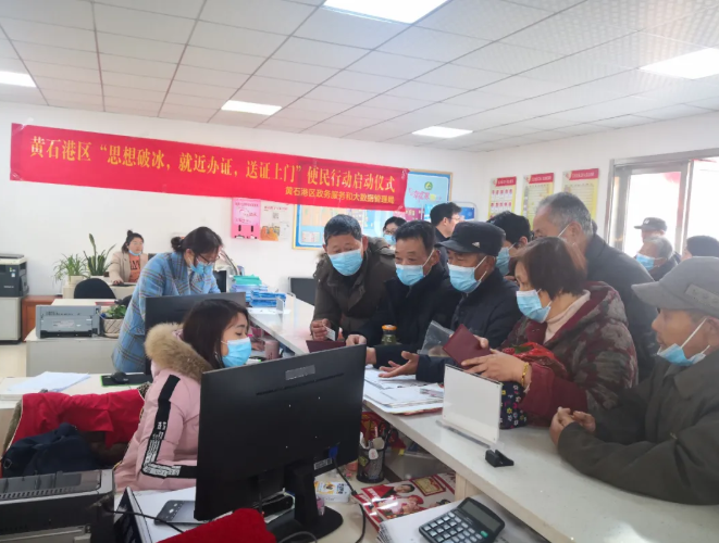 3月4日上午,春风又绿江北,黄石港区政务服务与大数据管理局深入江北管理区,为40余名距离城区较远,出行不便的老人开展办证业务。