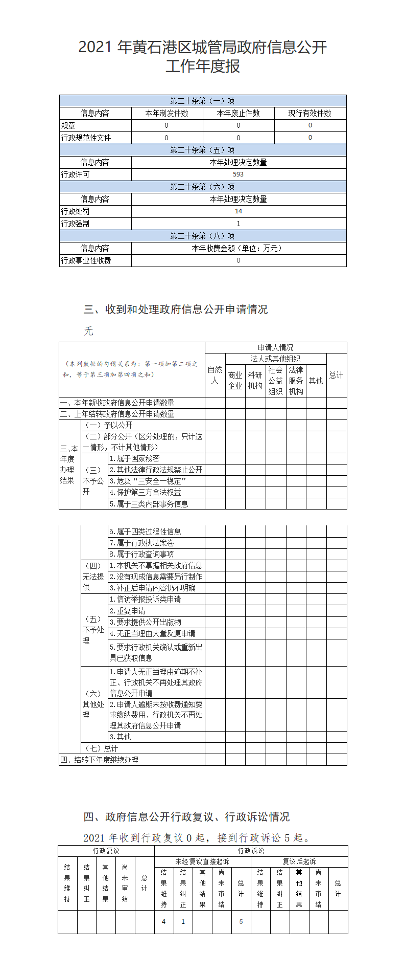 1.收到行政复议0起,接到行政诉讼5起;