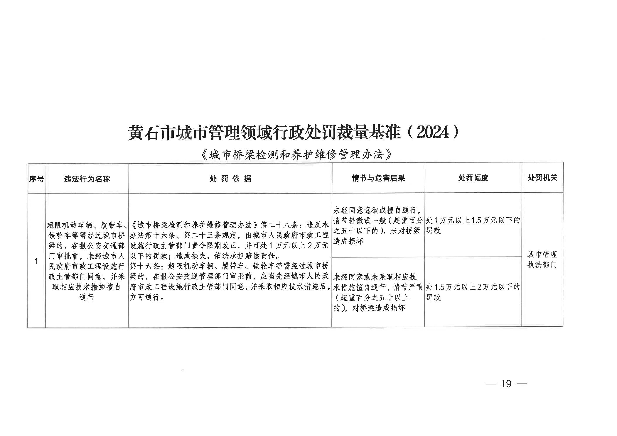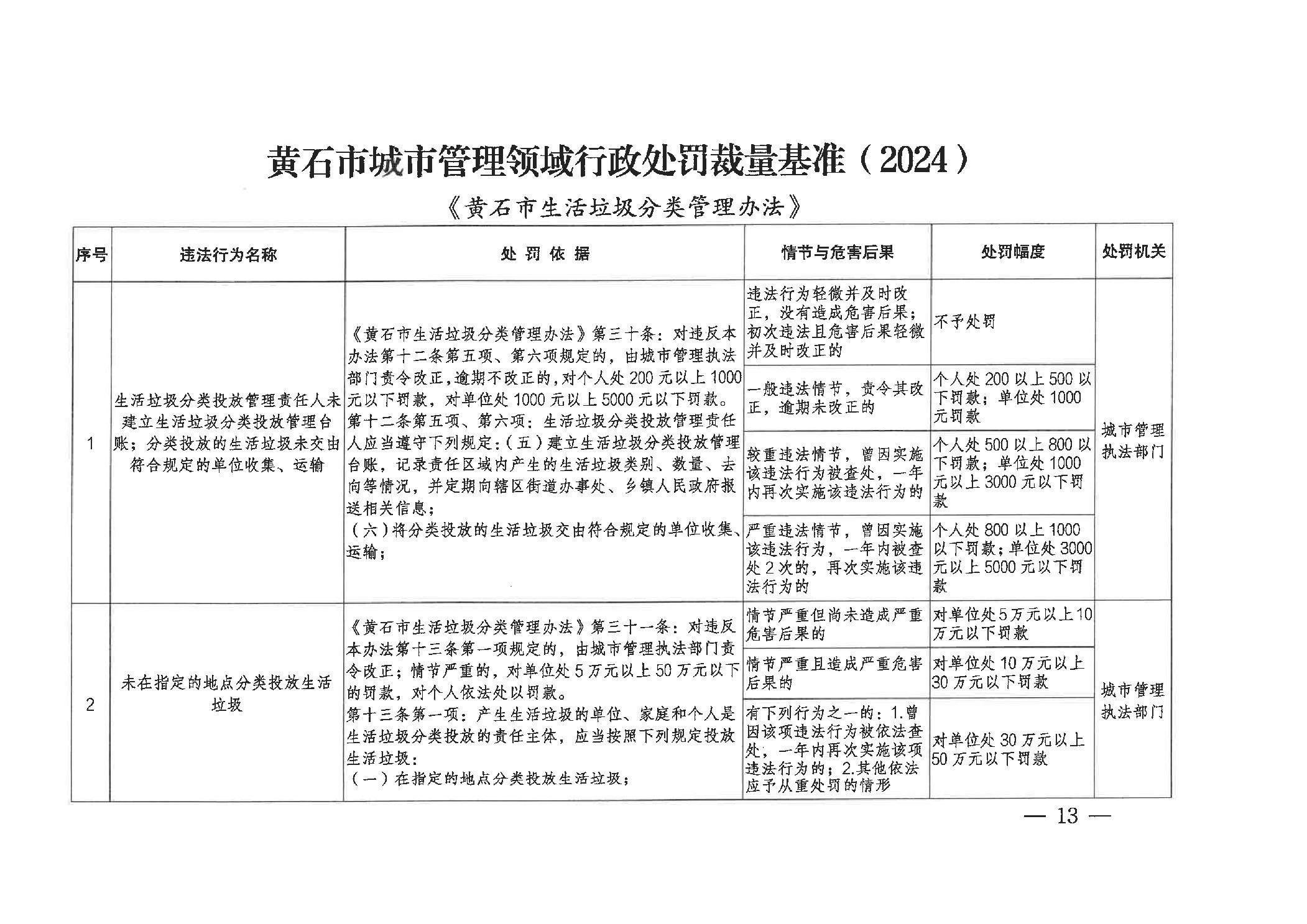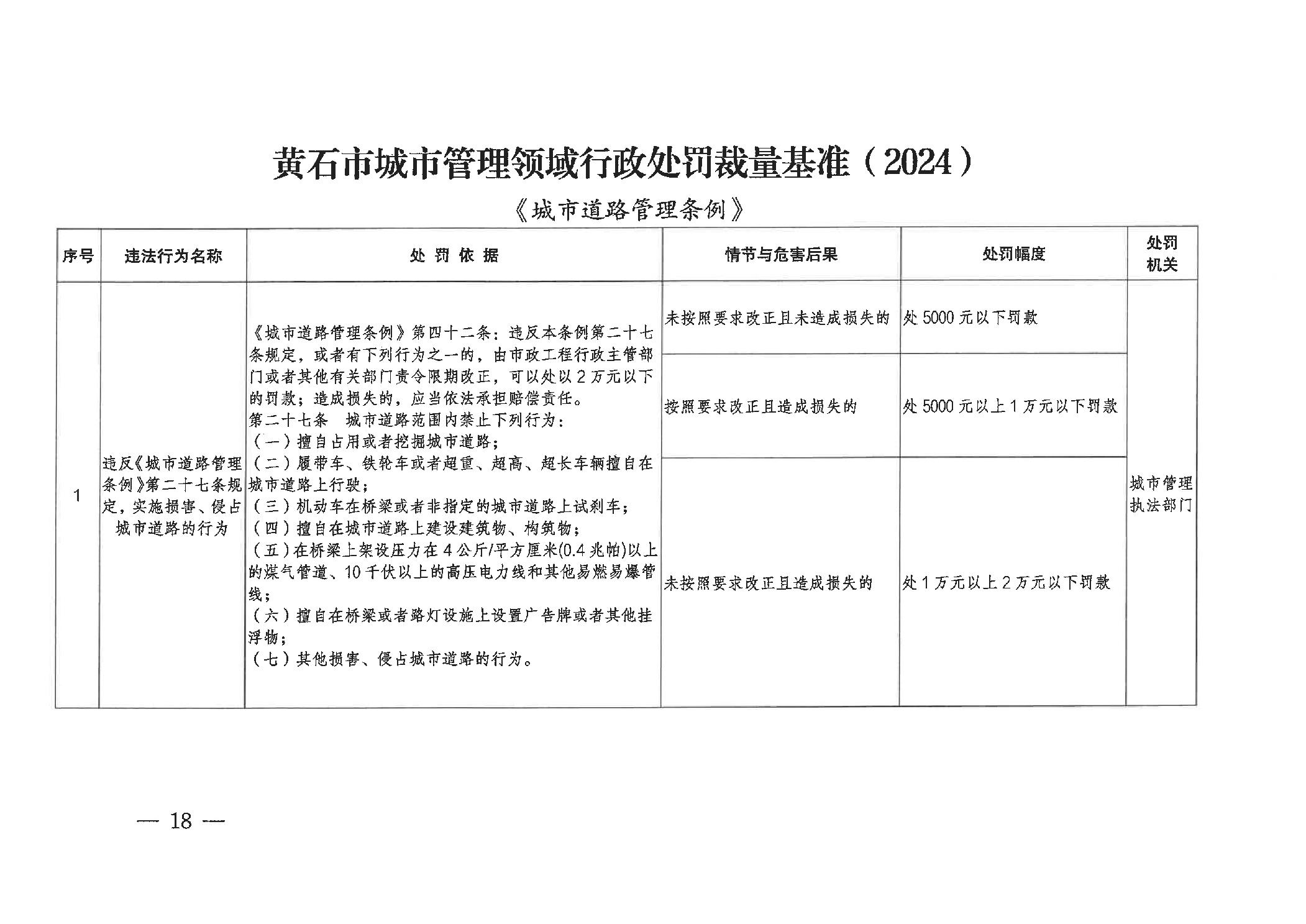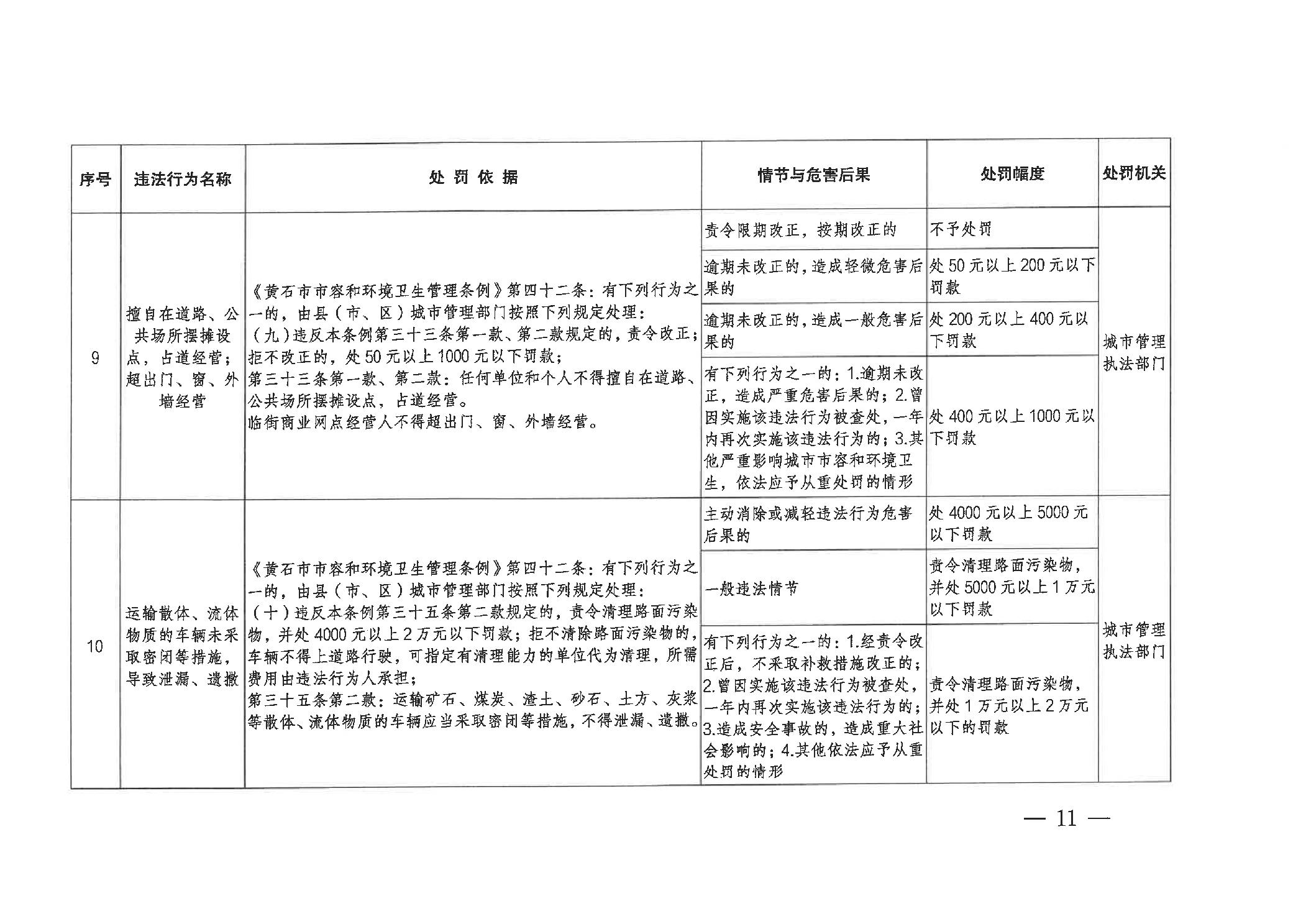 黄石市城市管理执法委员会关于印发黄石市城市管理领域行政处罚裁量基准适用规则和黄石市城市管理领域行政处罚裁量基准(2024)的通知