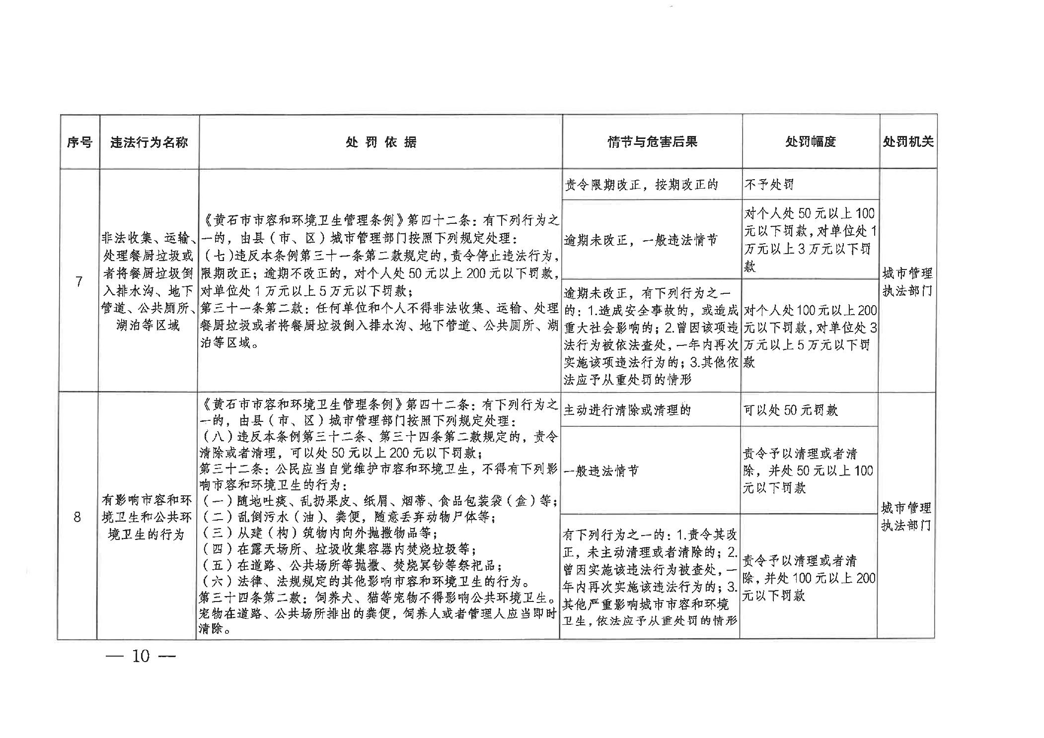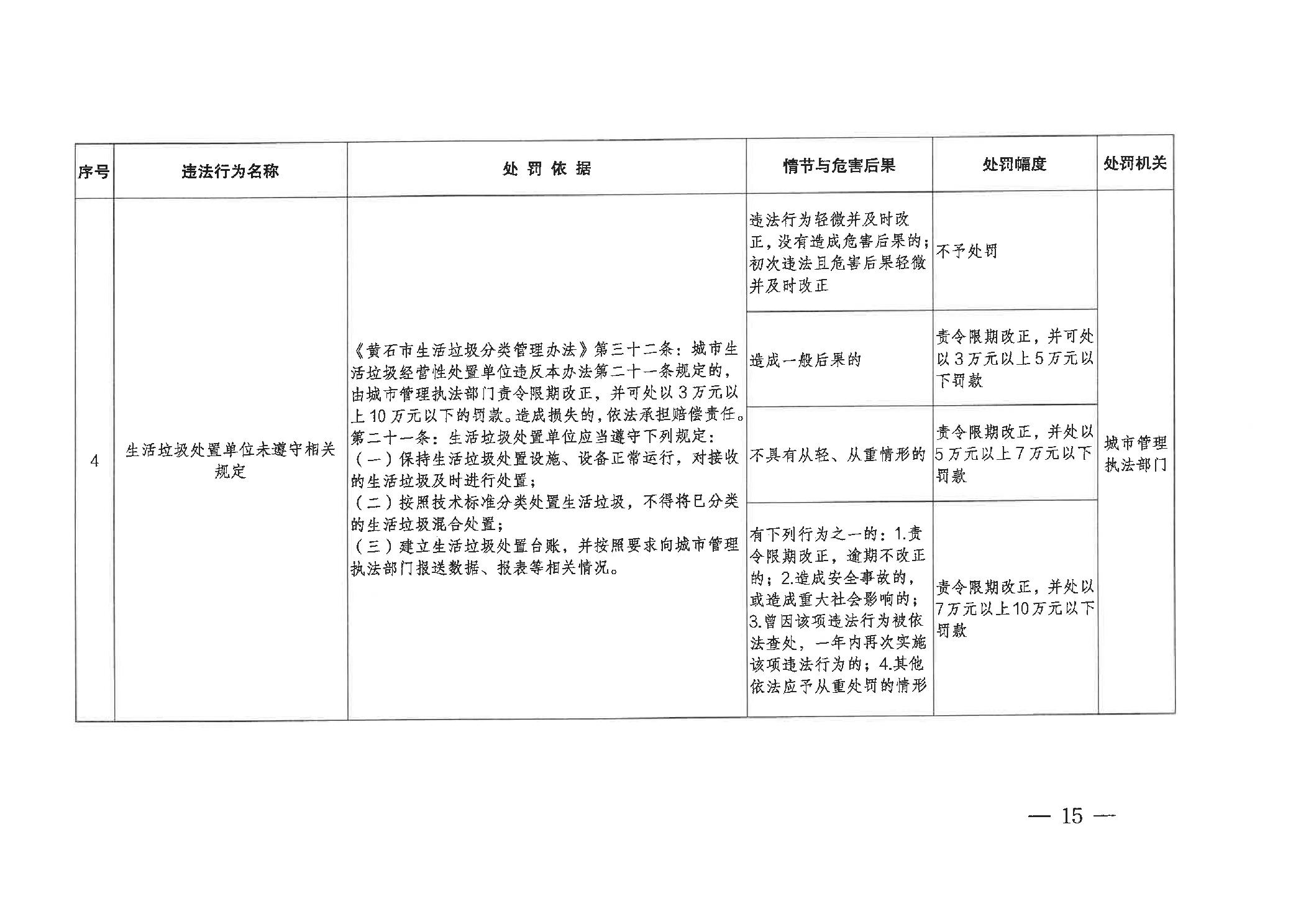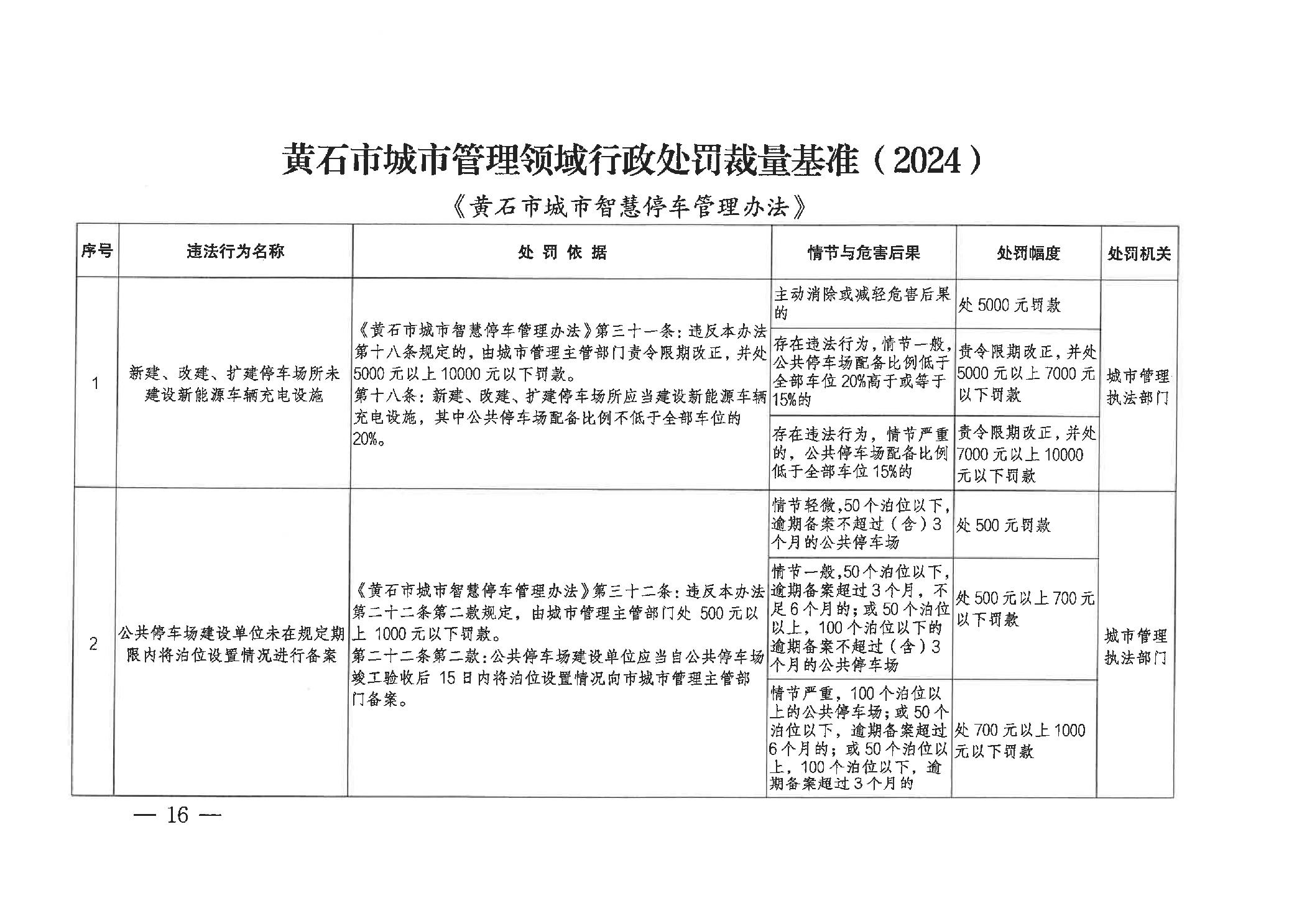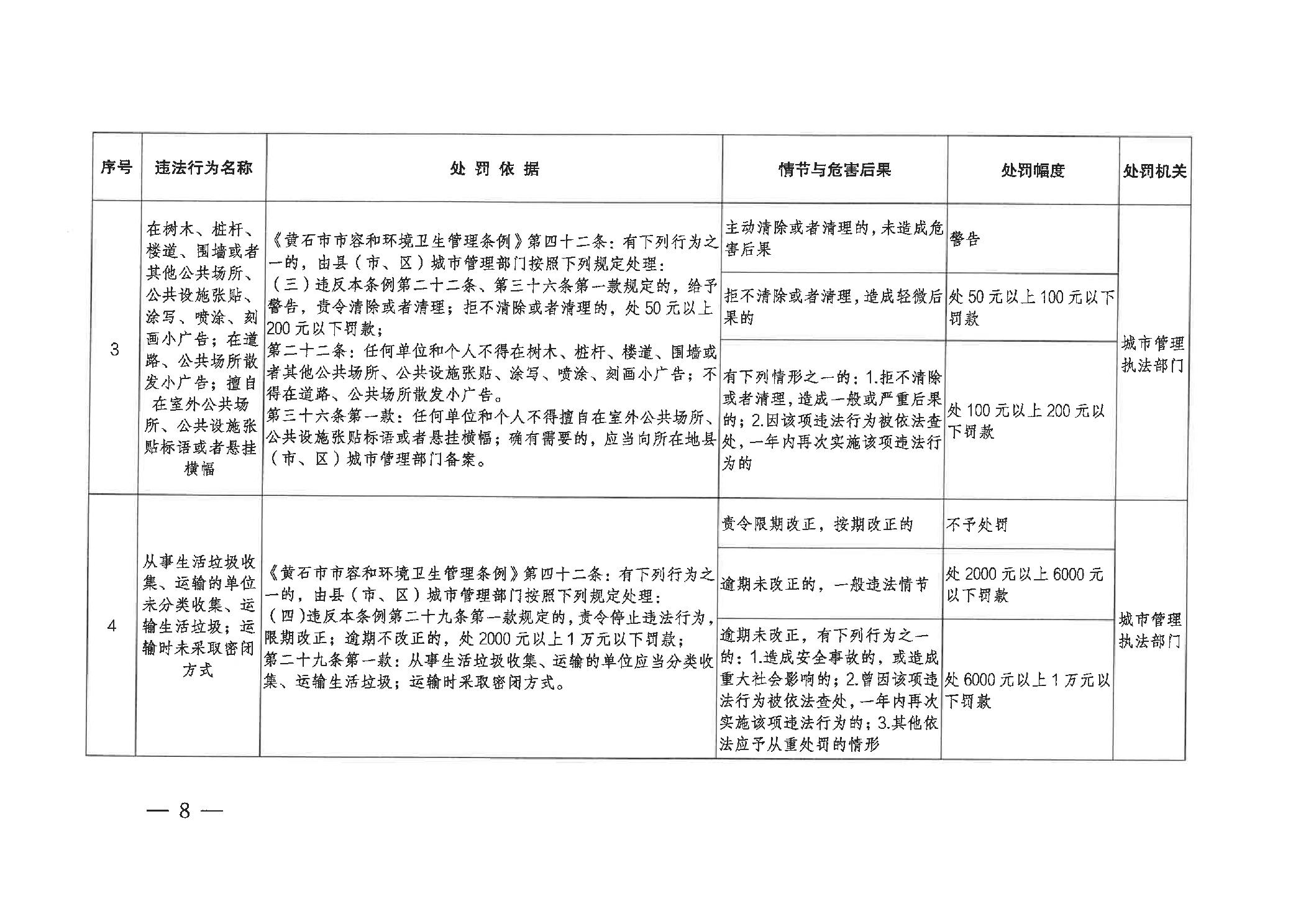 黄石市城市管理执法委员会关于印发黄石市城市管理领域行政处罚裁量基准适用规则和黄石市城市管理领域行政处罚裁量基准(2024)的通知