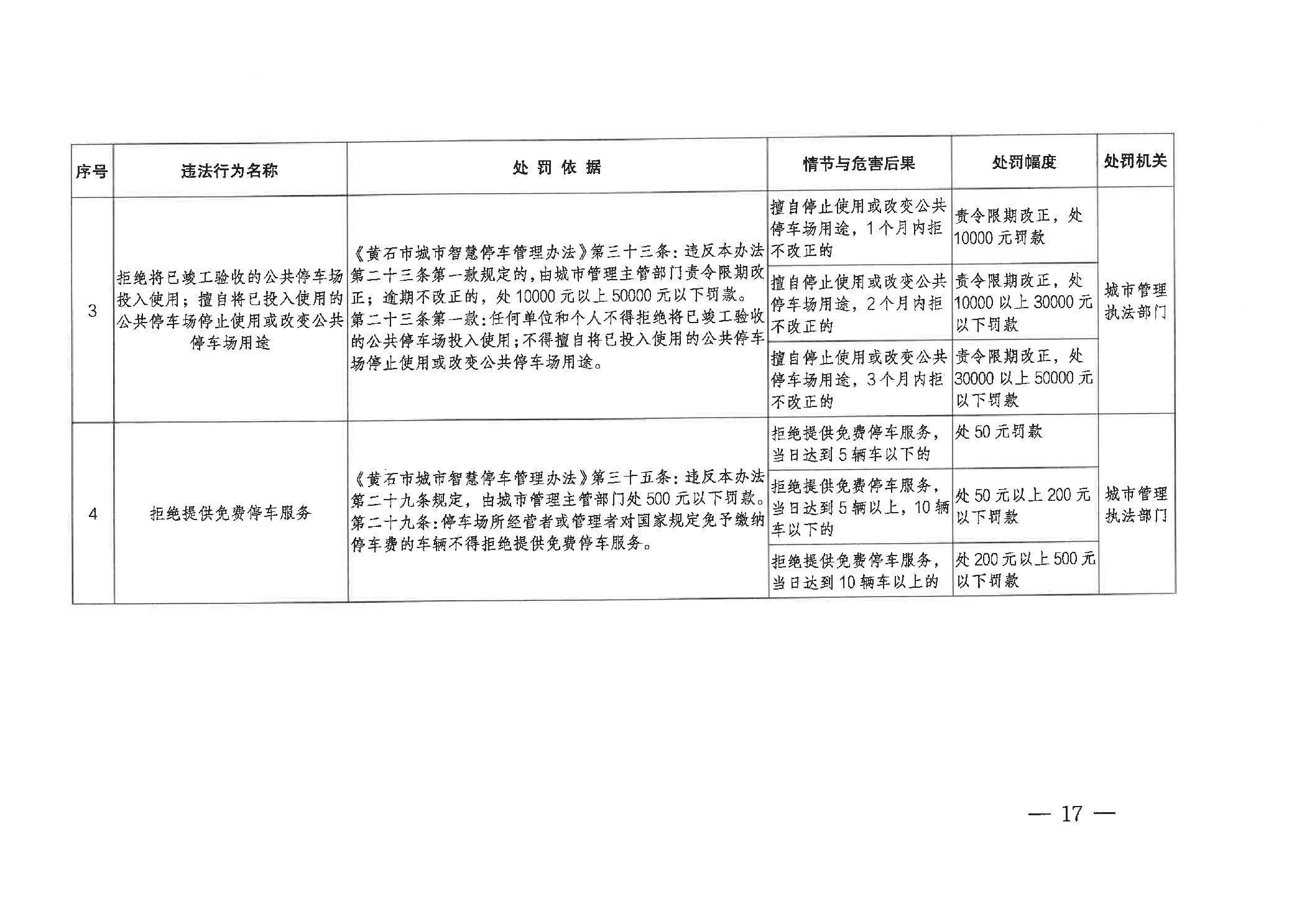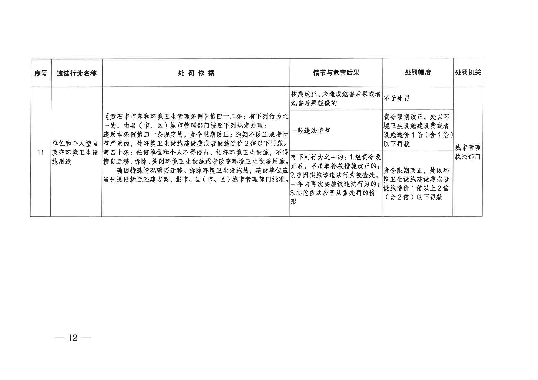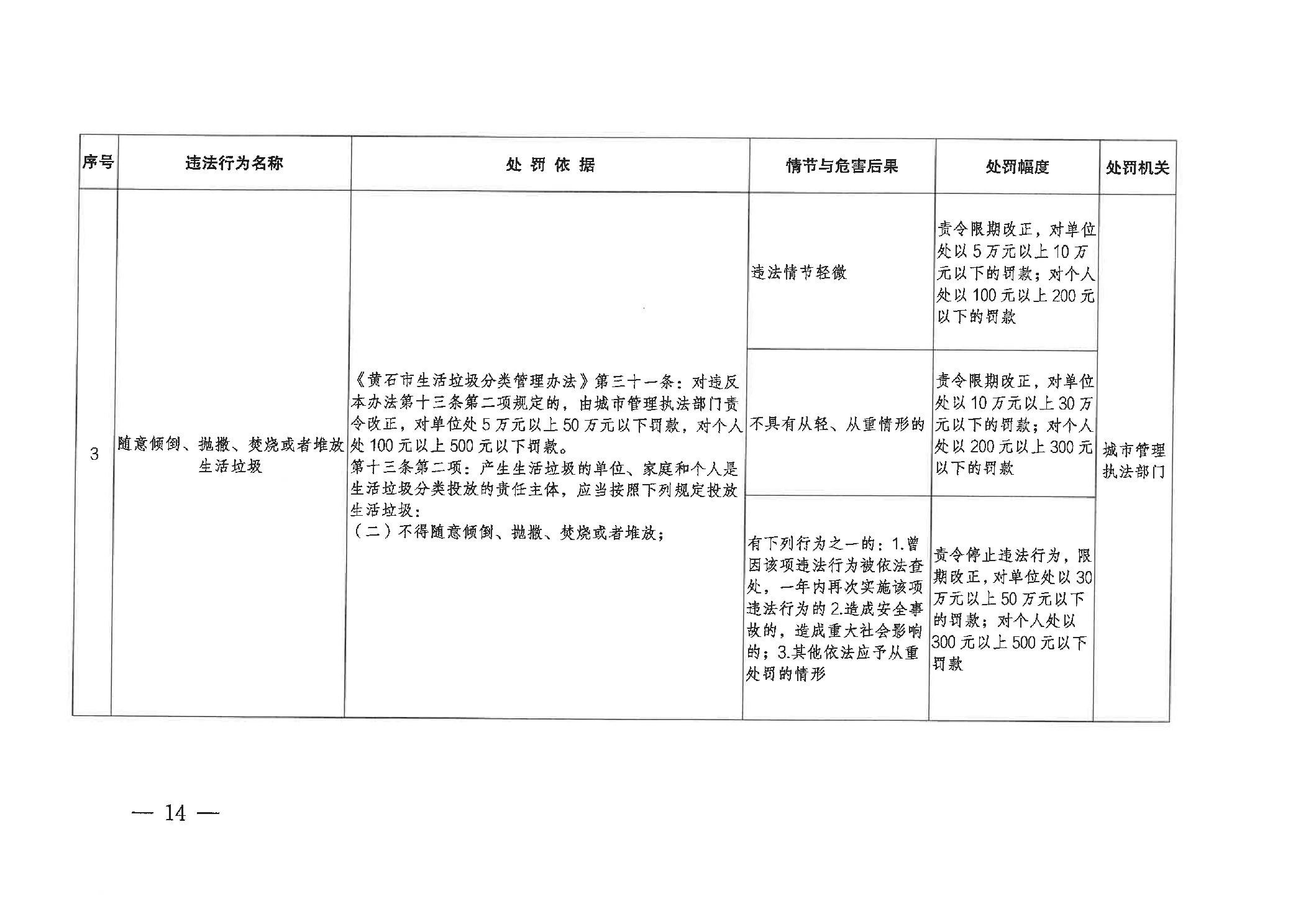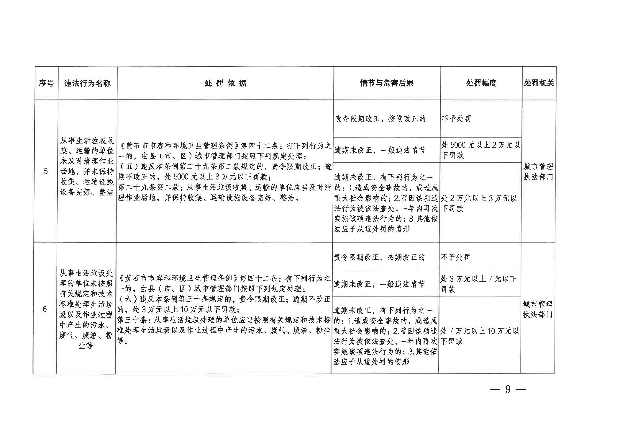 黄石市城市管理执法委员会关于印发黄石市城市管理领域行政处罚裁量基准适用规则和黄石市城市管理领域行政处罚裁量基准(2024)的通知