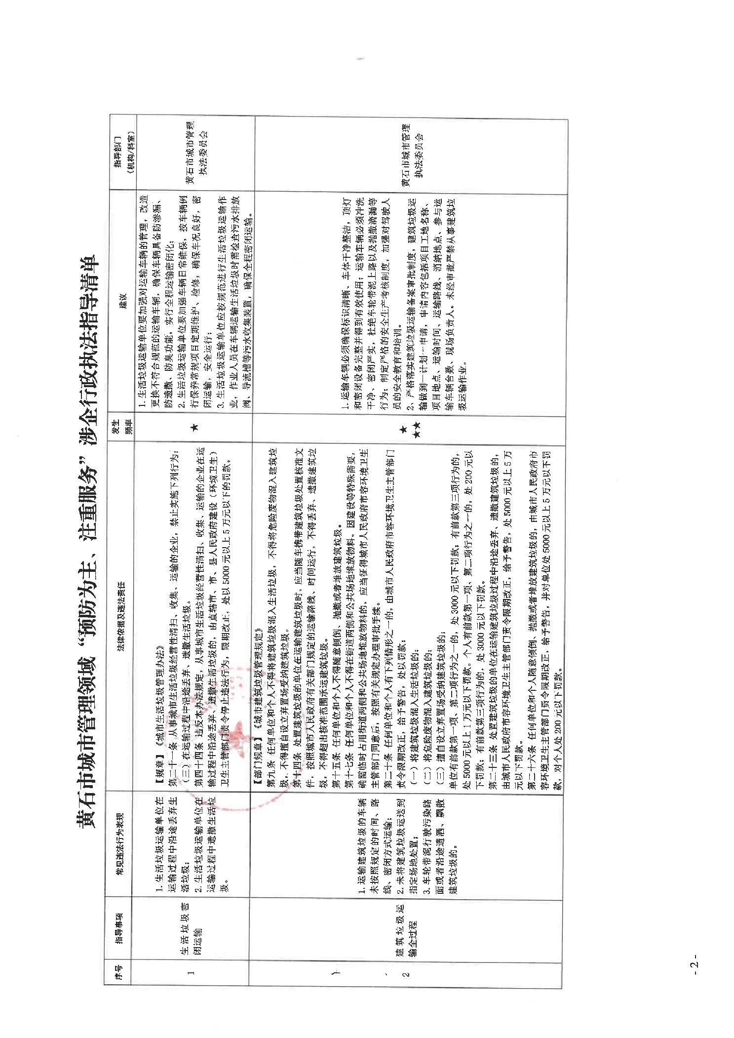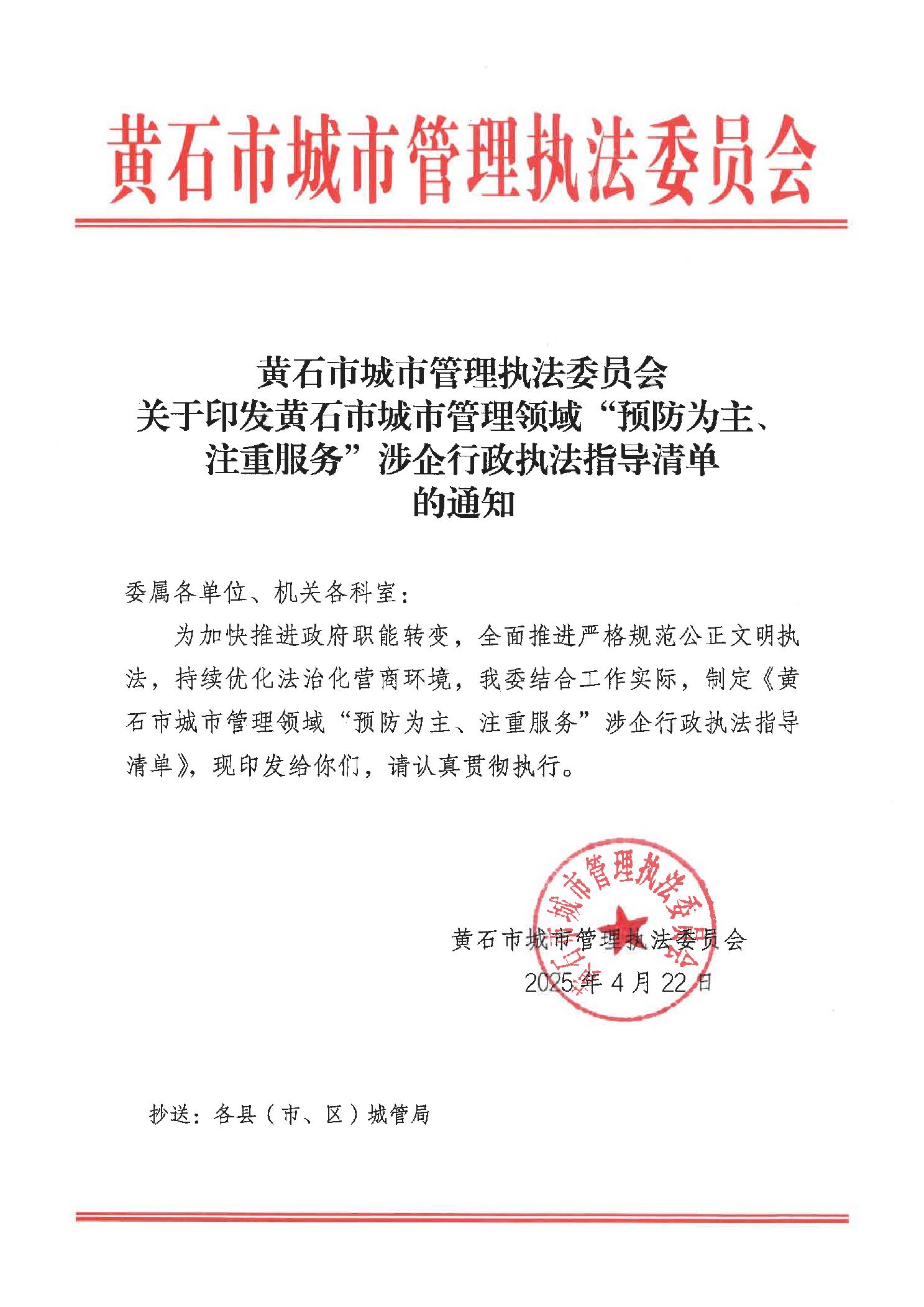 黄石市城市管理执法委员会关于印发黄石市城市管理领域“预防为主、注重服务”涉企行政执法指导清单的通知