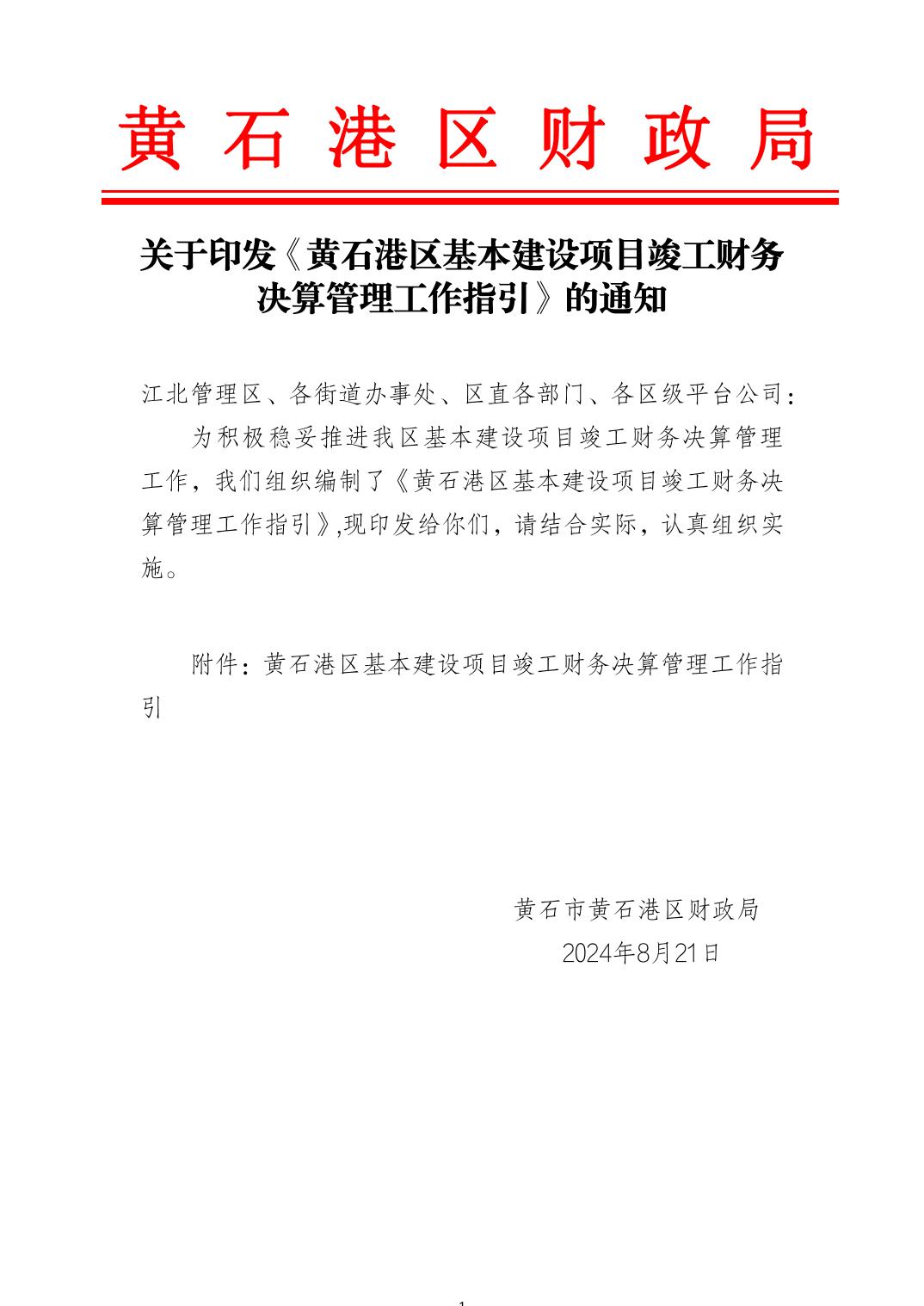 关于印发《黄石港区基本建设项目竣工财务决算管理工作指引》的通知