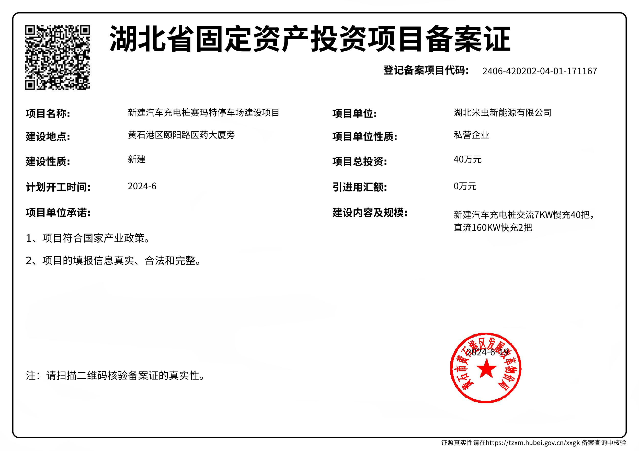 新建汽车充电桩赛玛特停车场建设项目备案证