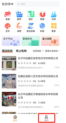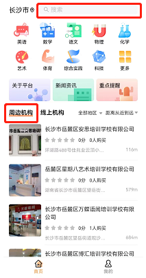 在APP主页可以搜索机构名称或者根据周边机构推荐,往下滑动进行选择相应的培训机构。