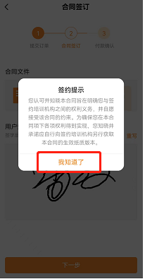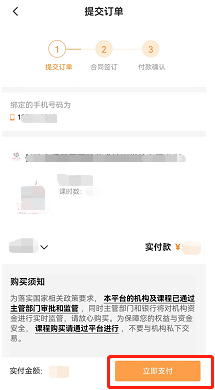 点击相应的机构,选择合适的课程点击“购买”,选择“立即支付”,签订合同,确定付款。