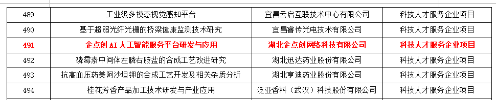 近日,湖北省科学技术厅公示2025年度省级科技计划项目(第一批)拟立项名单,我区湖北企点创网络科技有限公司申报的“企点创AI人工智能服务平台研发与应用”项目荣登榜单。