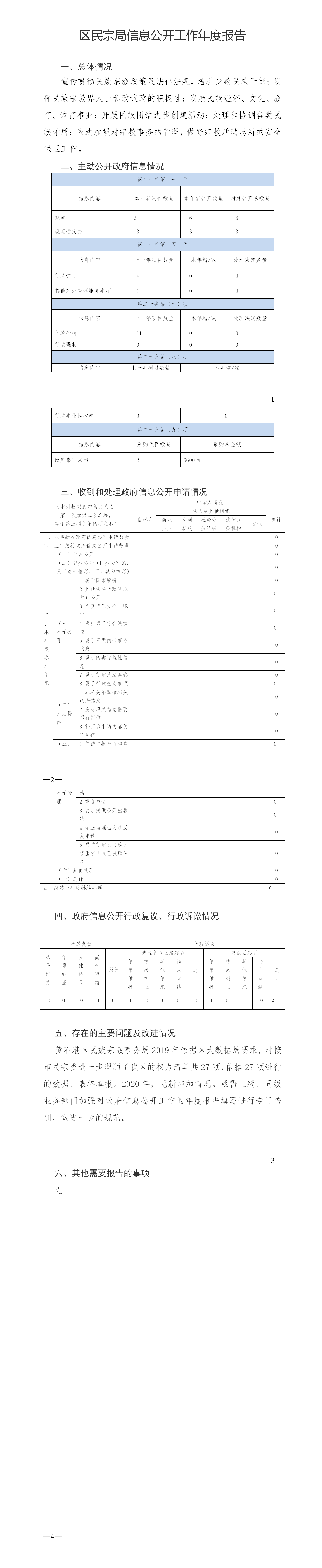 2019年黄石港区民族宗教事务局政府信息公开工作年度报告