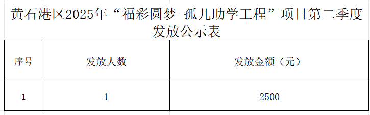 黄石港区2025年“福彩圆梦 孤儿助学工程”项目第二季度发放公示表