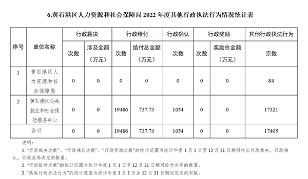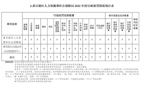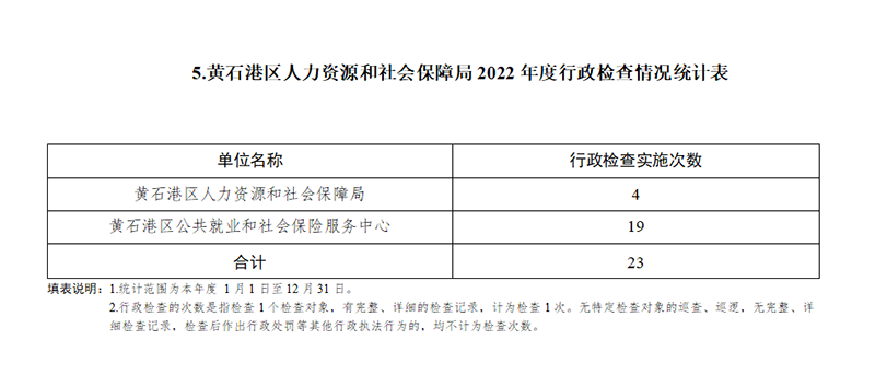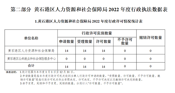 第二部分 黄石港区人力资源和社会保障局年度行政执法数据表