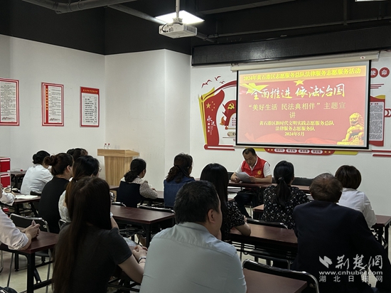 今年5月是第四个“民法典宣传月”。2024年5月16日下午,黄石港区法律服务志愿服务队开展民法典主题宣讲活动,邀请万达社区居民、物业代表等50余人参加宣讲活动。