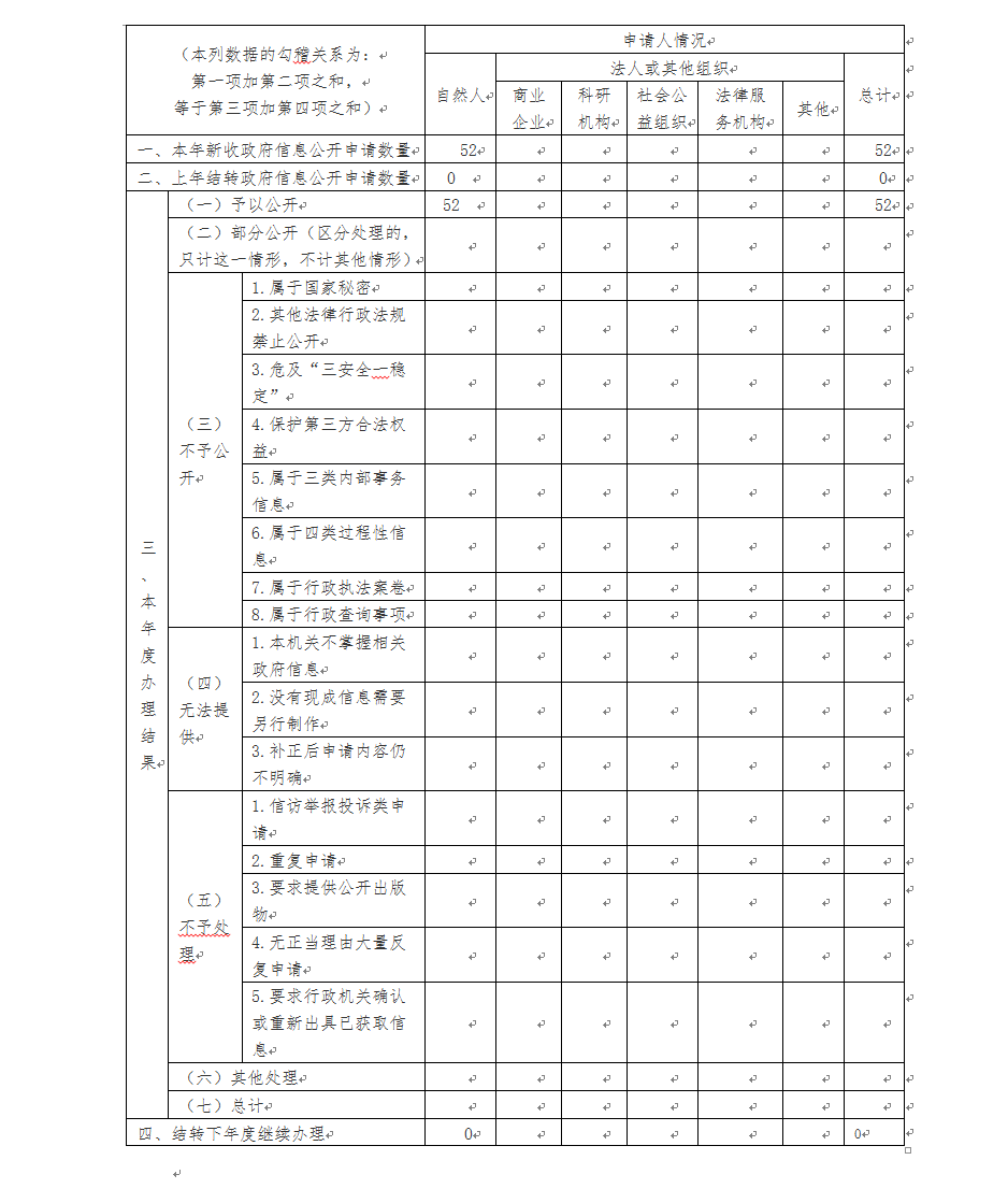 三、收到和处理政府信息公开申请情况