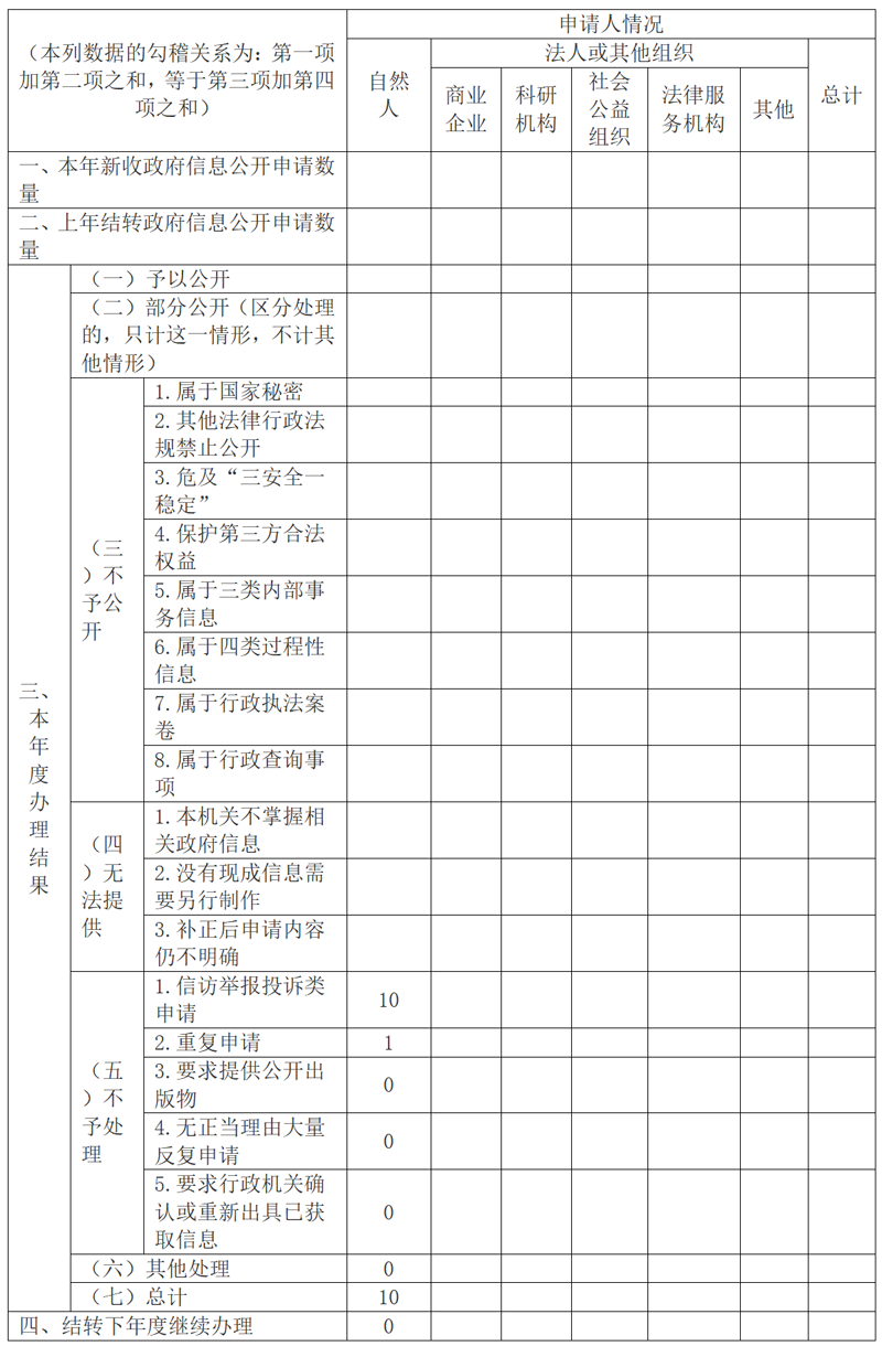 三、行政机关收到和处理政府信息公开申请情况