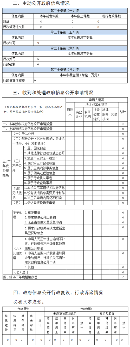 (二)依申请公开情况。我局无独立的门户网站,因此没有在网站上公开,但是在我局公示栏中已经公示。