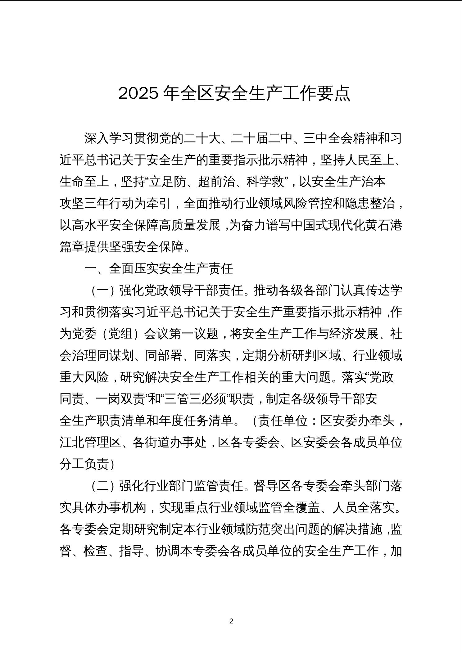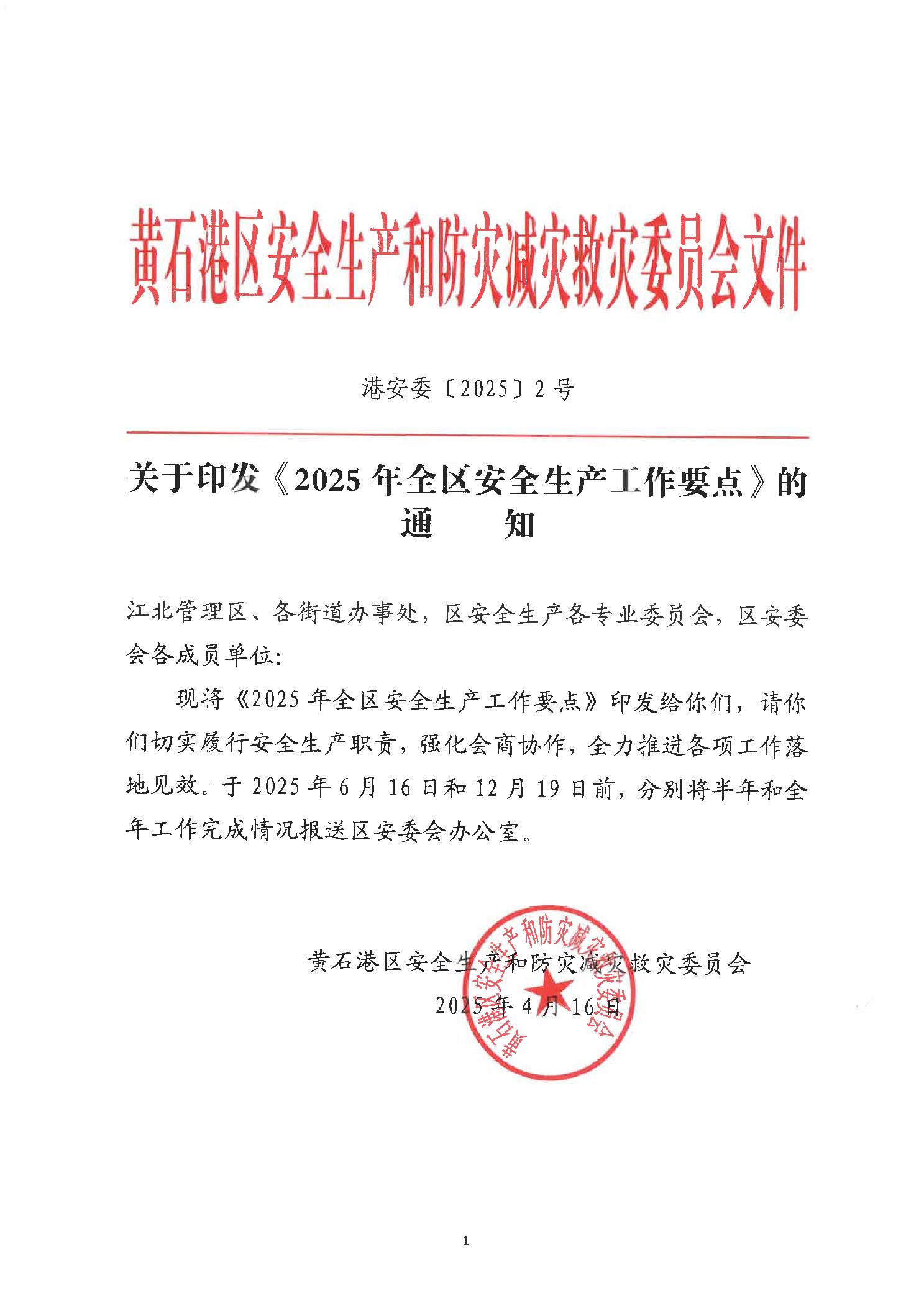 港安委〔2025〕2号关于印发《2025年全区安全生产工作要点》的通知