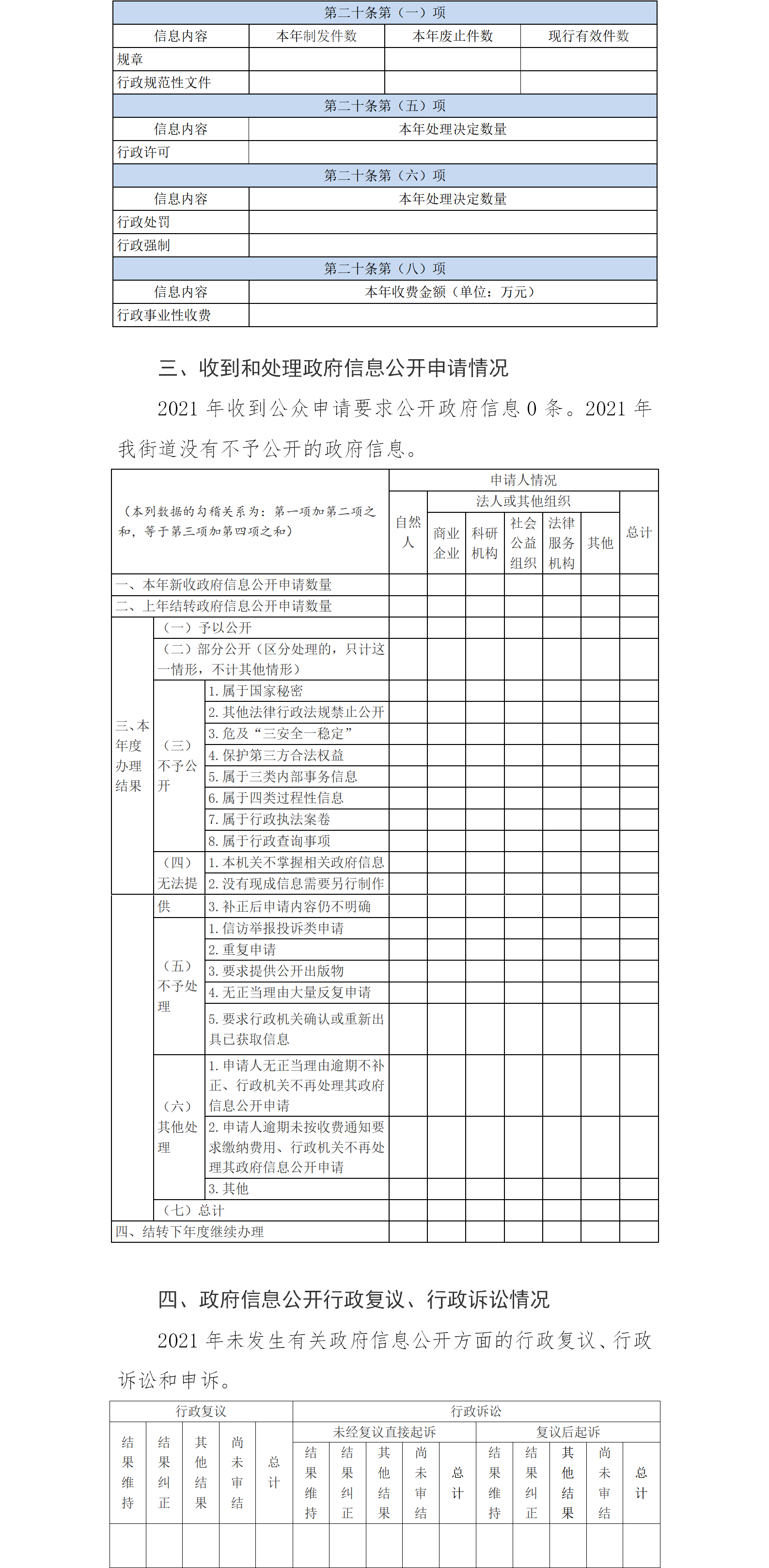 2.为方便群众获取信息,我街道健全了依申请公开工作机制,开通了投诉举报信箱。2021年收到公众申请要求公开政府信息0条。