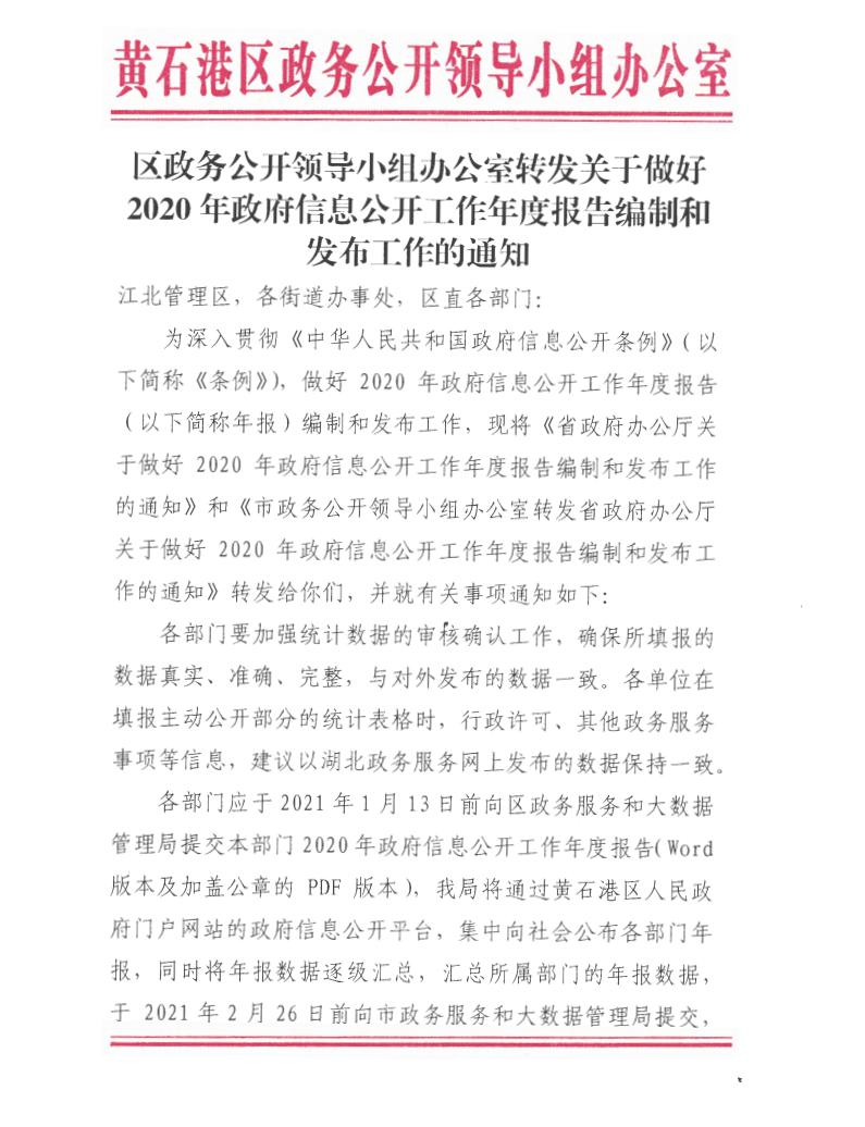 区政务公开领导小组办公室转发关于做好2020年政府信息公开工作年度报告编制和发布工作的通知