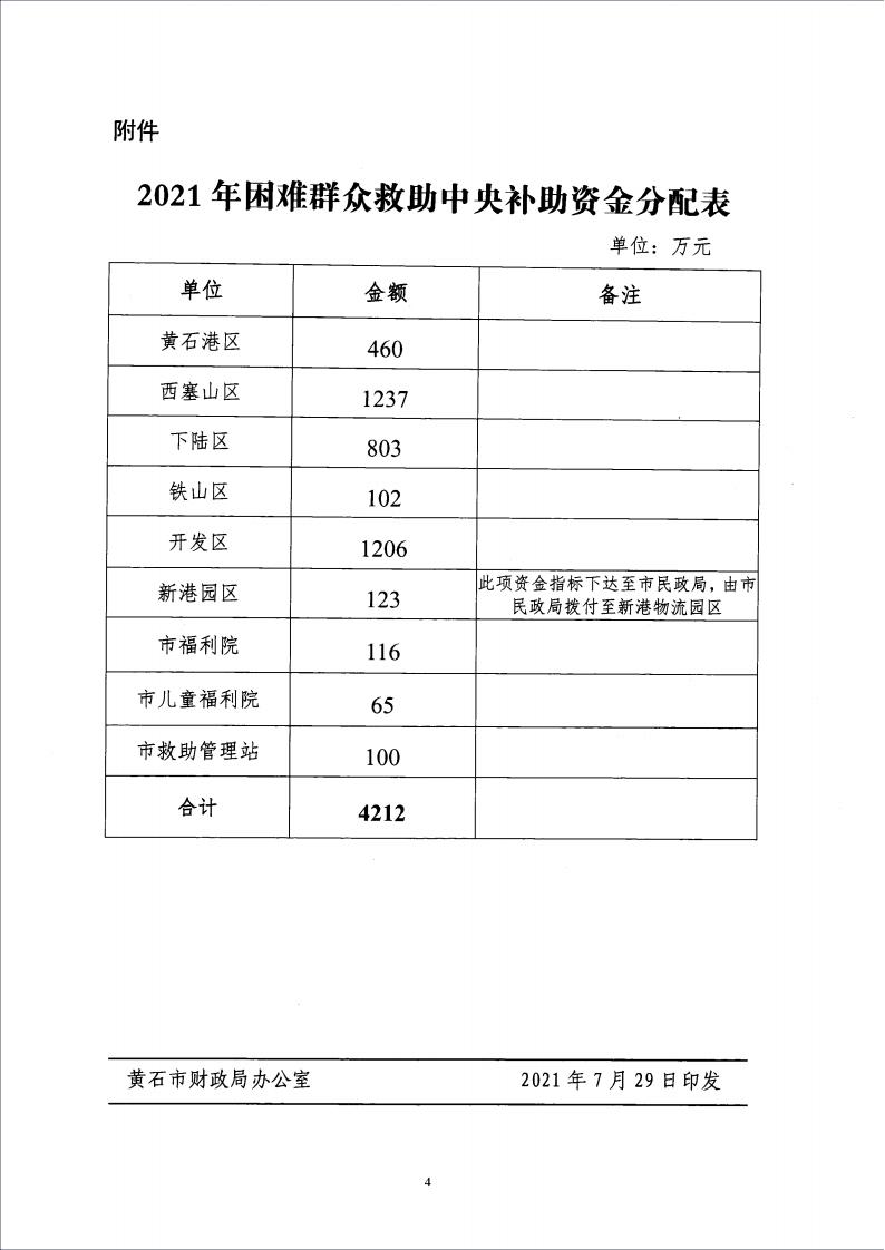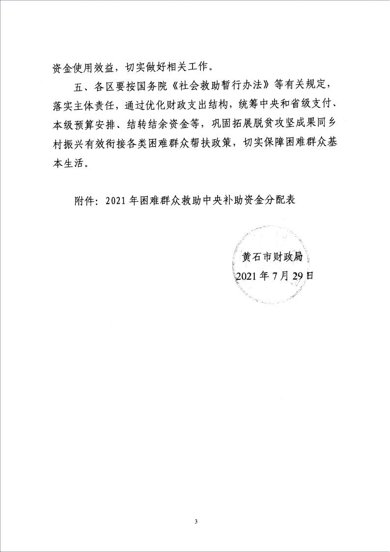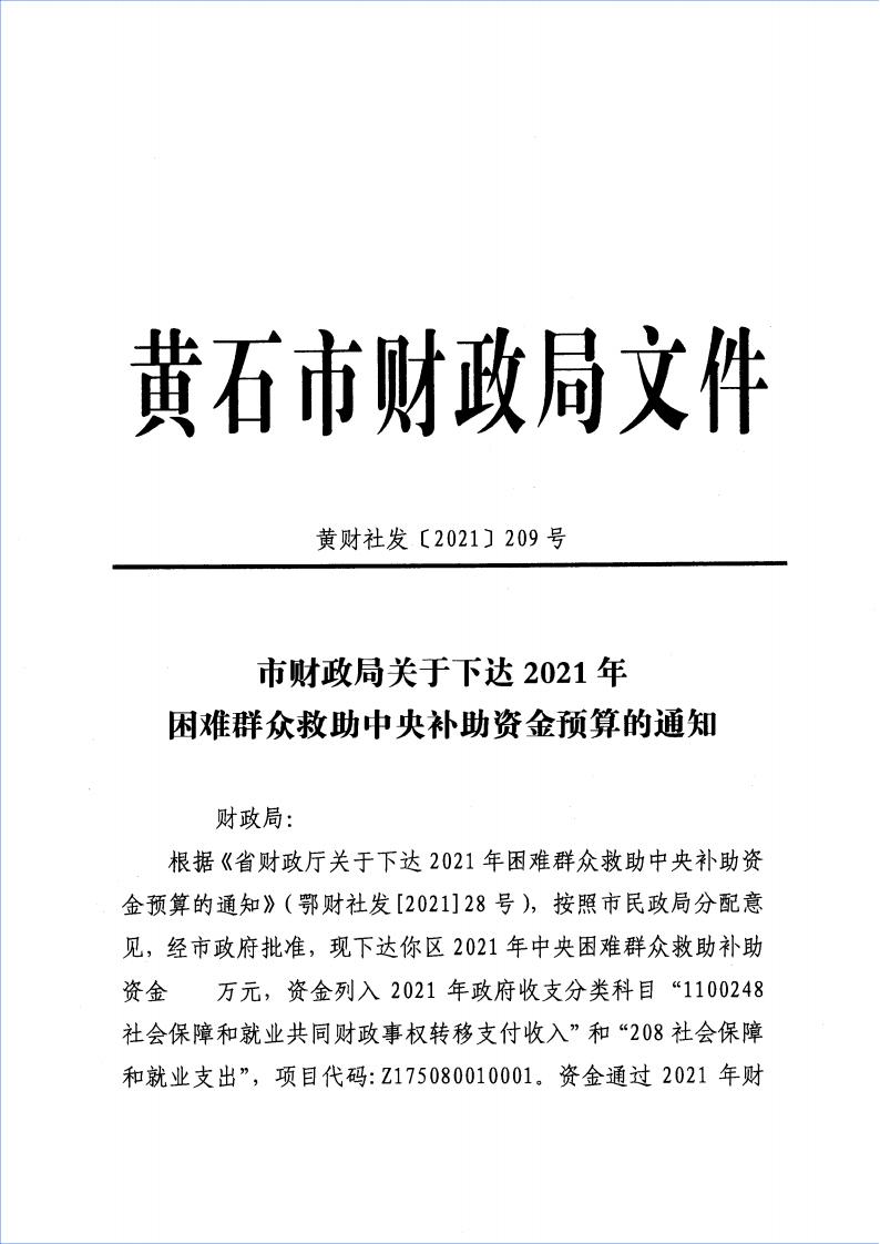 黄财社发【2021】209号 市财政局关于下达2021年困难群众救助中央补助资金预算的通知(鄂财社发2021 28号)