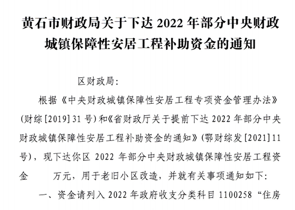 关于下达2022年部分中央财政城镇保障性安居工程补助资金的通知