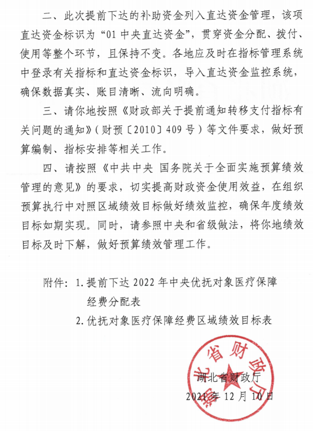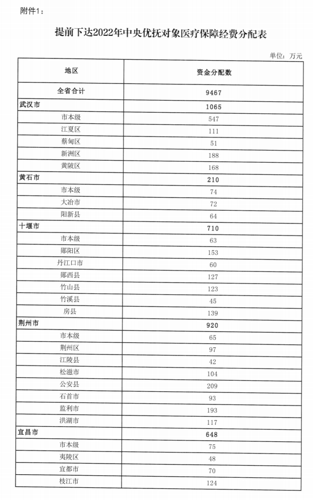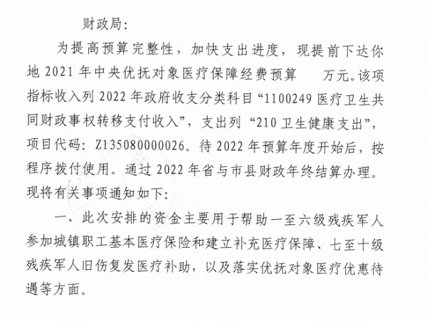 关于提前下达2022年中央优抚对象医疗保障经费的通知