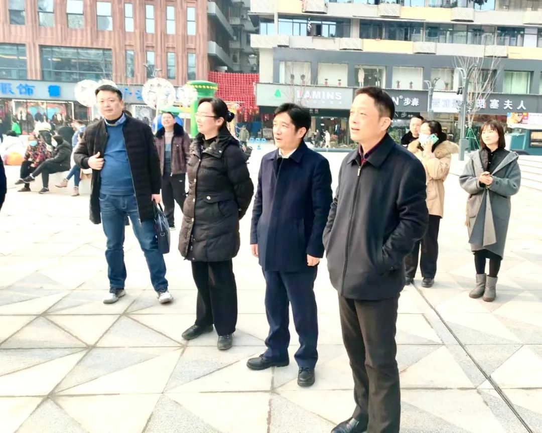 1月9日,区委书记严荣勇,区委副书记、区长冯雨带队调研交通路步行街改造升级工作。