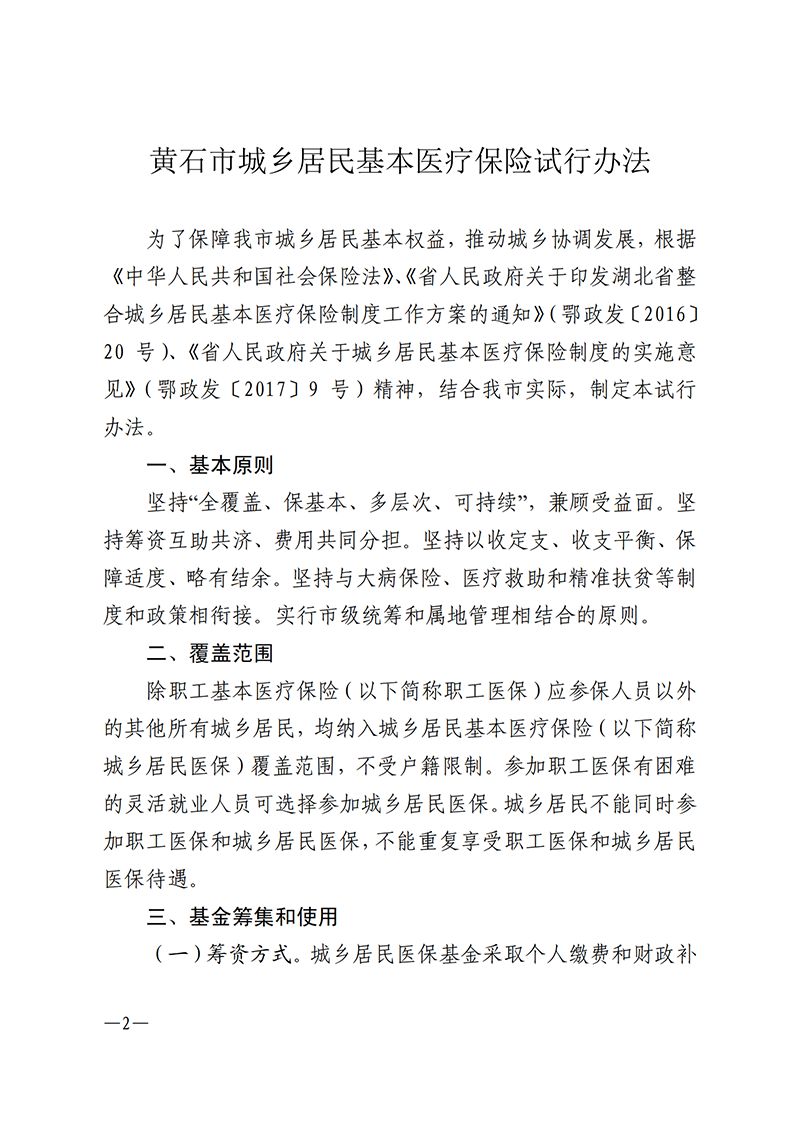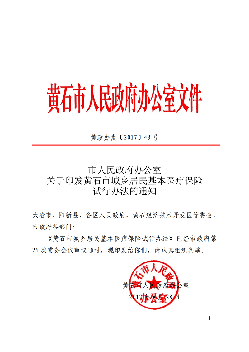 城乡居民基本医疗保险试行办法(黄政办发〔2017〕48)
