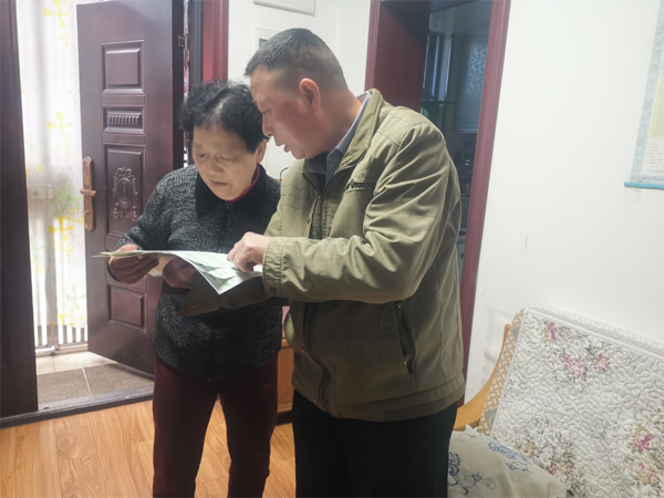 近日,花湖街道残联专委伍廉云将“持证残疾人意外伤害保险”理赔须知单送到徐昌国家中。76岁的徐昌国是天虹社区听力一级(重度)残疾人,家中共有4名听障人士,考虑到徐昌国听力不好,伍廉云特意将保险单中列出的保险项目及注意事项读给他妻子王阿姨(非听障人士)听,王阿姨连声道谢。