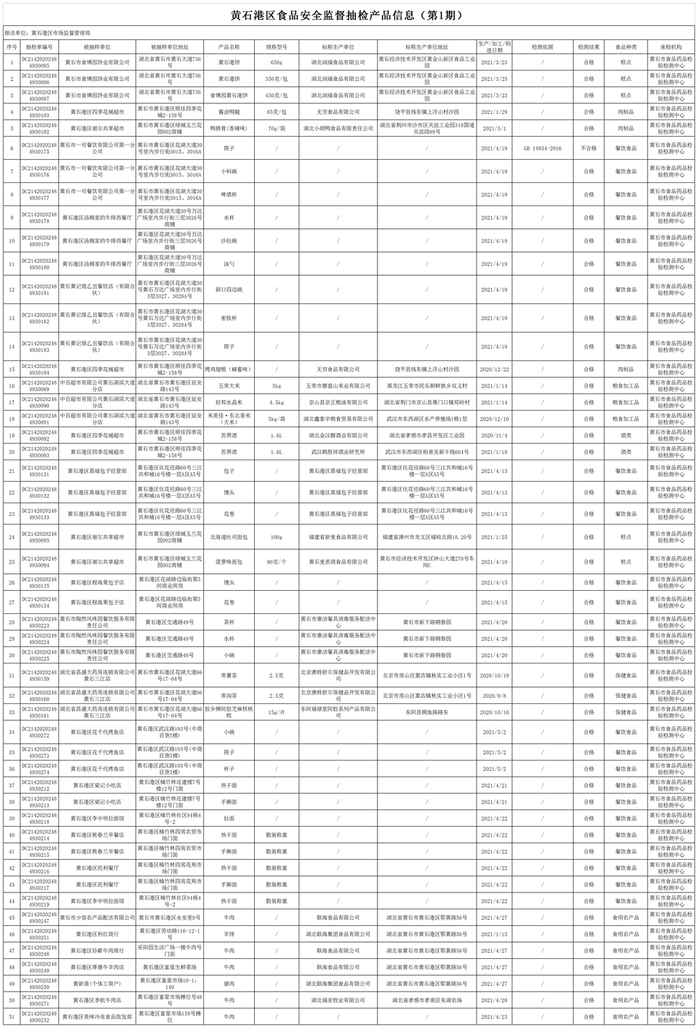 关于公布2021年第1期食品安全监督抽检信息的公告