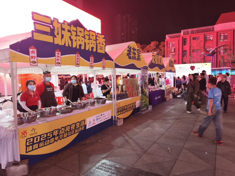 4月13日晚,2025年“点亮城市夜生活 释放运动新活力”夜间体育嘉年华暨社区运动会在交通路步行街拉开帷幕。通过体育展演、科普互动、体质检测、美食市集等多元形式,吸引市民参与,掀起体育消费新风尚。