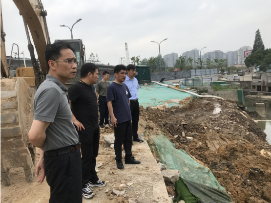 在新闸港周边环境整治施工现场,严荣勇要求加快工程进度,对岸坡进行美化绿化,切实解决新闸港边九厢地拆迁后的环境卫生问题,为周边居民营造卫生舒适的生活环境。