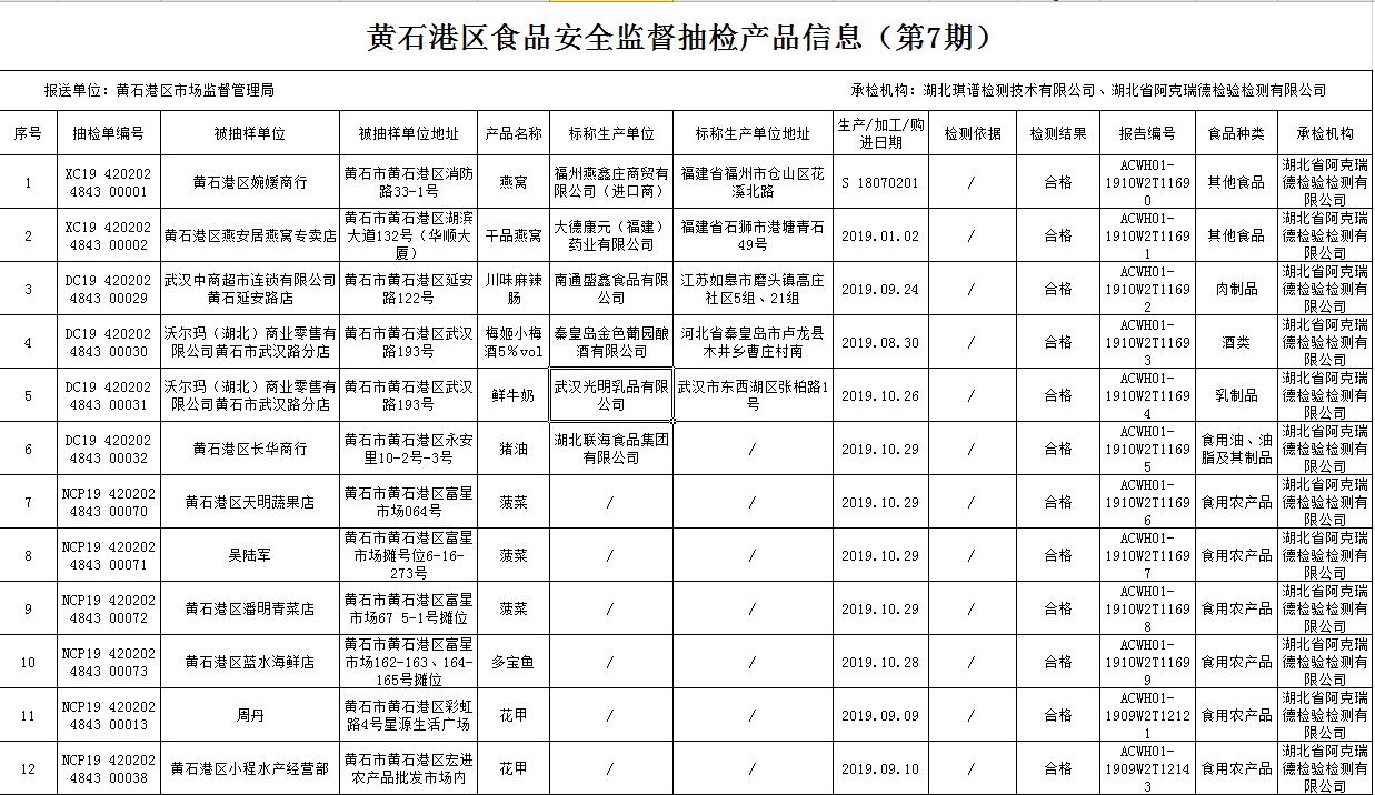 黄石港区市场监督管理局关于公布2019年第7期食品安全监督抽检信息的公告