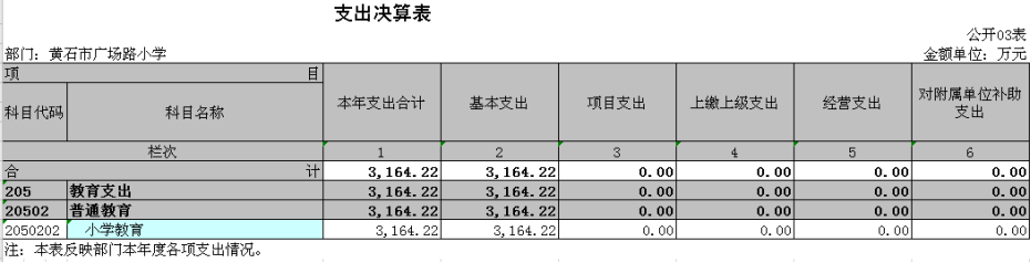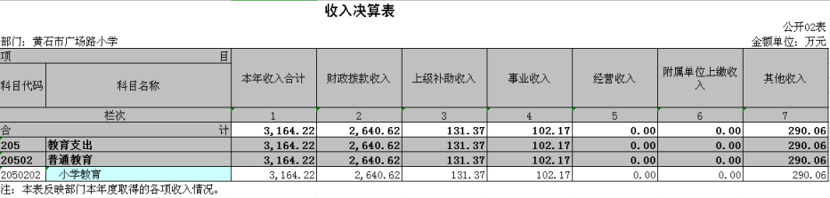 第二部分: 黄石港区广场路小学单位2022年部门决算表