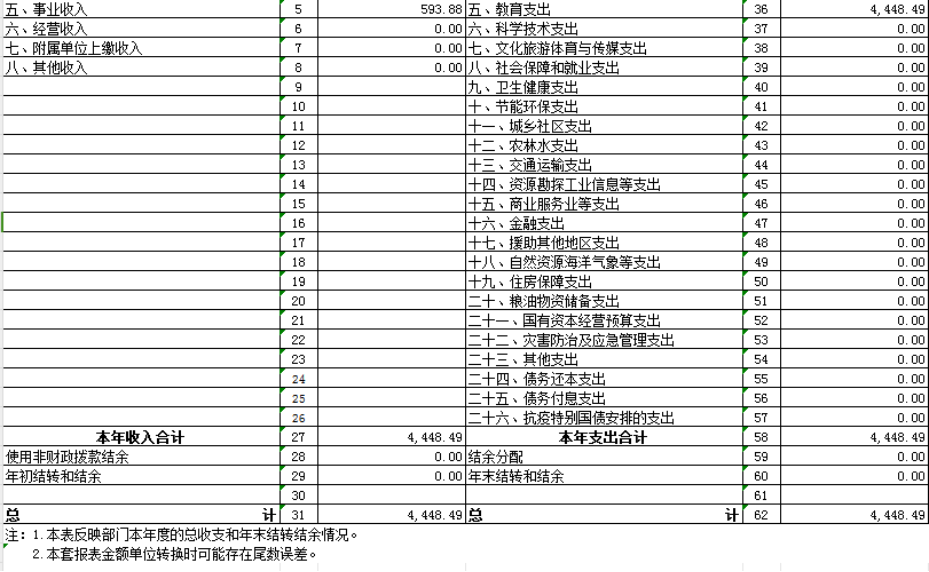 2022年度收、支总计均为:4448.49万元。与2021年度4398.6万元相比,收、支总计各增加49.89万元,增长1.13 %,主要原因是:南校区整体拆迁到磁湖北岸产生的费用。