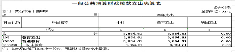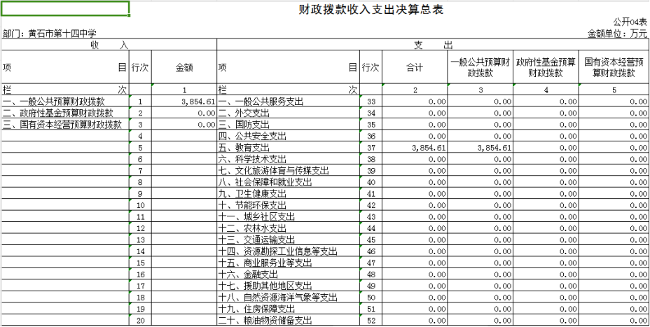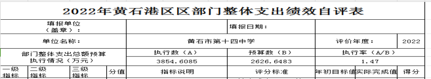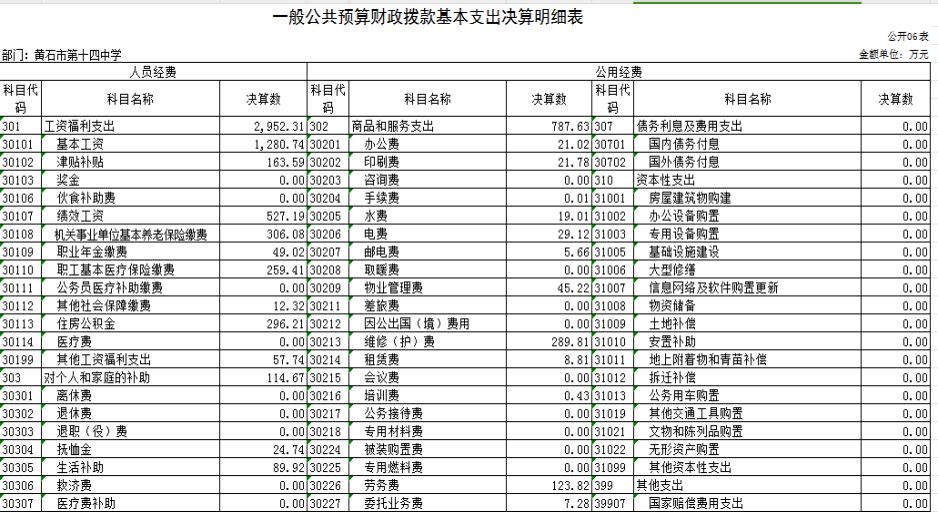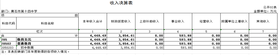 第二部分: 黄石港区黄石市第十四中学2022年部门决算表
