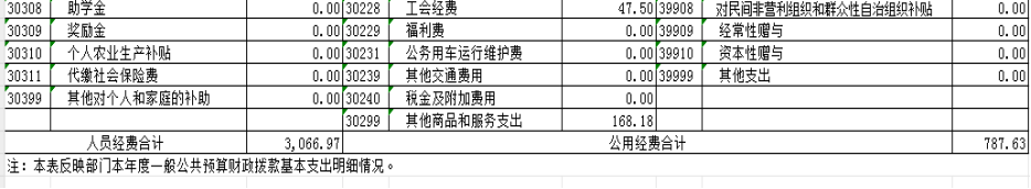 公用经费 787.63 万元,主要包括:办公费21.02万元、印刷费21.78万元、水费19.01万元、电费29.12万元、邮电费5.66万元、物业管理费45.22万元、维修(护)费289.81万元、租赁费8.8万元、培训费0.43万元、劳务费123.82万元、委托业务费7.28万元、工会经费47.5万元、其他商品和服务支出168.18万元。
