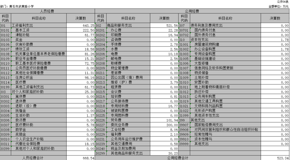 武黄路小学2022年部门决算公开