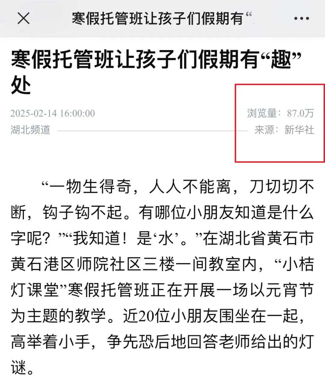 以《寒假托管班让孩子们假期有“趣”处》为题