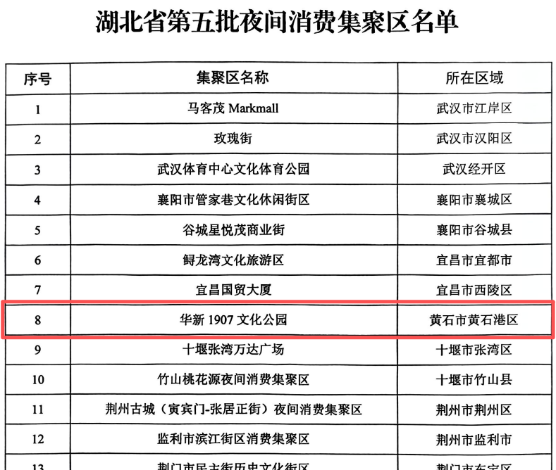 近日,湖北省发展和改革委员会正式公布第五批夜间消费集聚区名单,我区华新1907文化公园作为全市唯一入选项目,成功跻身全省二十个示范行列。这一认定标志着该园区在夜间消费场景营造、业态融合创新等方面的实践,获得省级层面权威认可。