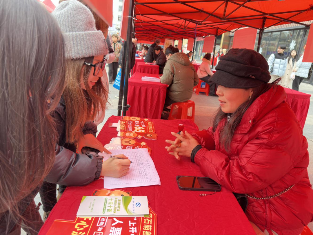 政策咨询区与“文明集市”暖意融融。政策咨询区的工作人员现场解读就业、社保补贴等惠民政策,细致解答群众疑问,发放300余份政策礼包,实现“政策找人、服务上门”。“文明集市”上,非遗文创精品整齐陈列,吸引群众驻足欣赏,书法爱好者免费赠送新春春联,法律咨询、免费理发等便民服务备受关注,累计服务群众400余人。