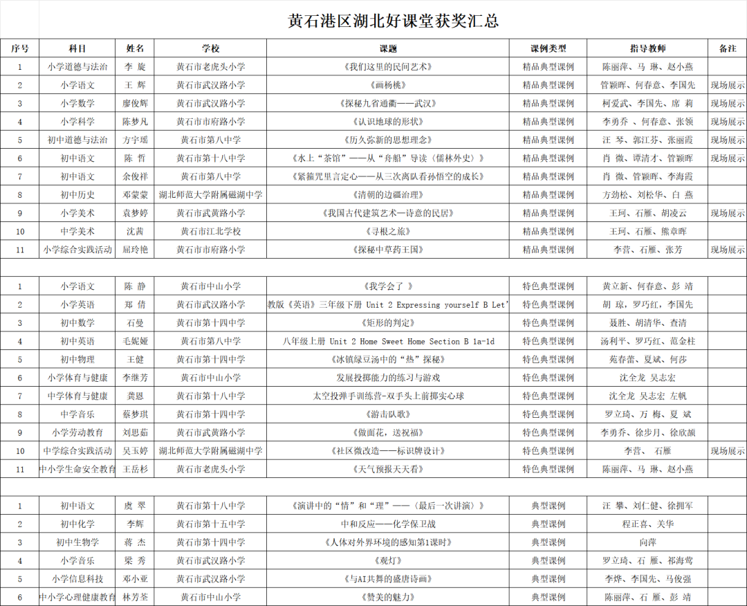 国家级、省级奖项名单出炉!黄石港区这些课程上榜!