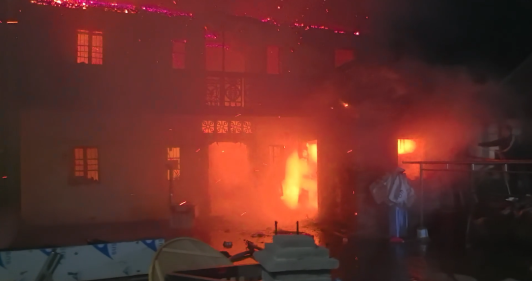 近日,上饶市一栋两层自建房突发火灾,现场火光冲天,消防员抵达现场时房屋已陷入猛烈燃烧状态,屋顶及墙面已出现破损,加之现场风力较大,火势迅速向周边蔓延。经过消防员一个半小时的紧张扑救大火被扑灭,但整个房屋及内部物品均被烧毁。据户主描述起火原因系家人燃放烟花时飞溅的火星引燃了民房周边堆放的柴火等易燃物。