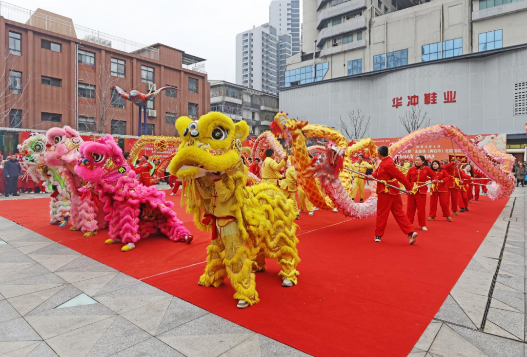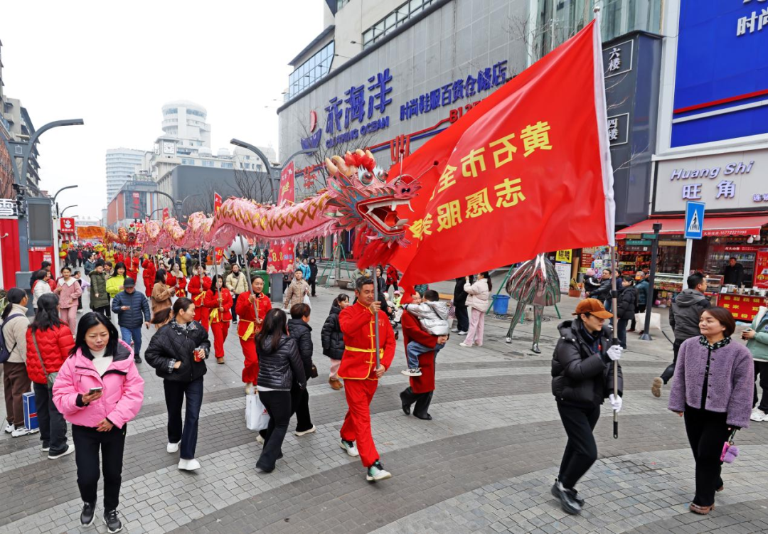黄石港区交通路步行街锣鼓喧天,
