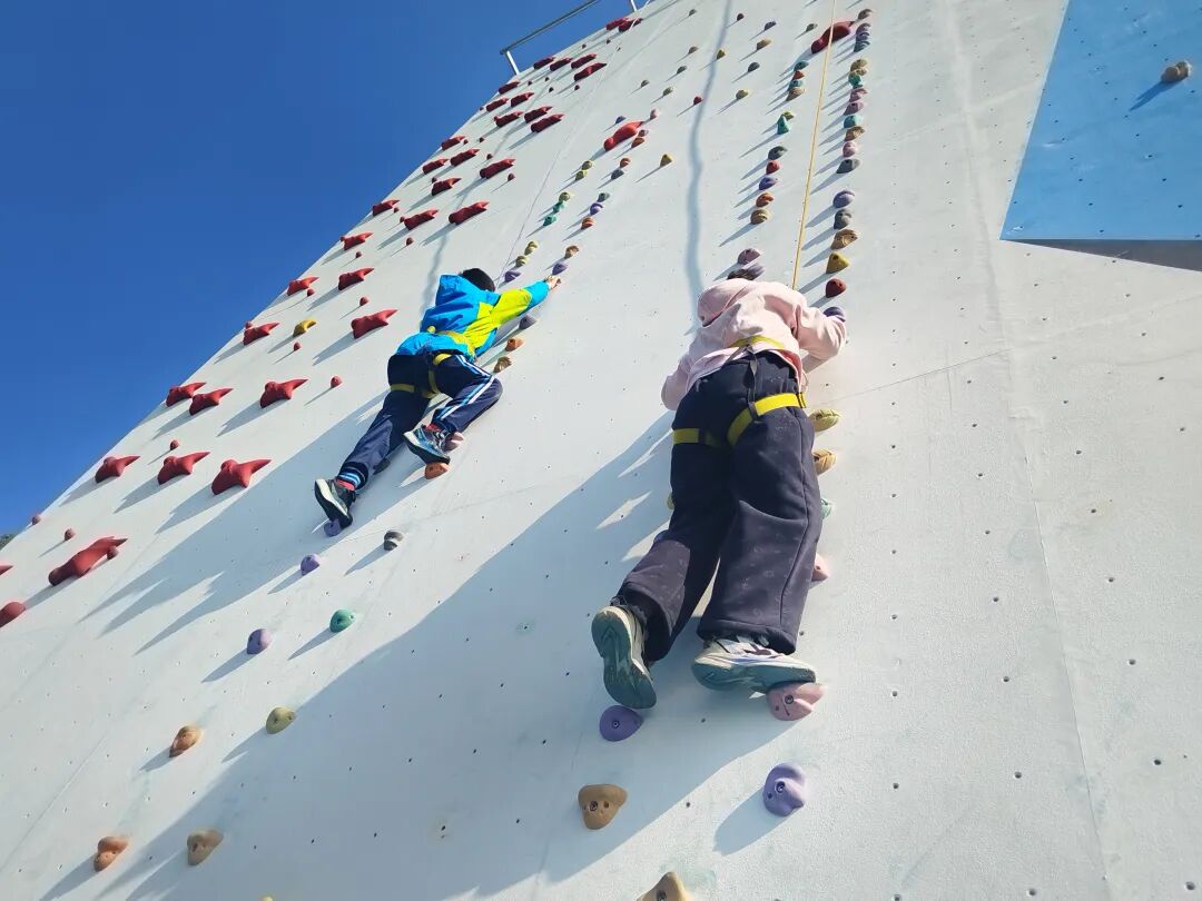 “我爬的时候,感觉腿在发抖。”四年级学生徐浩轩说,刚开始爬得很顺,慢慢地就“爬不动”了,听见同学们的加油声,他趴在岩壁上喘着气,咬着牙没有松手,一寸一寸爬向了顶端,身后响起了热烈的掌声。学生徐浩轩说,“悬在半空”的时候,他学会了战胜自我,向上攀登。