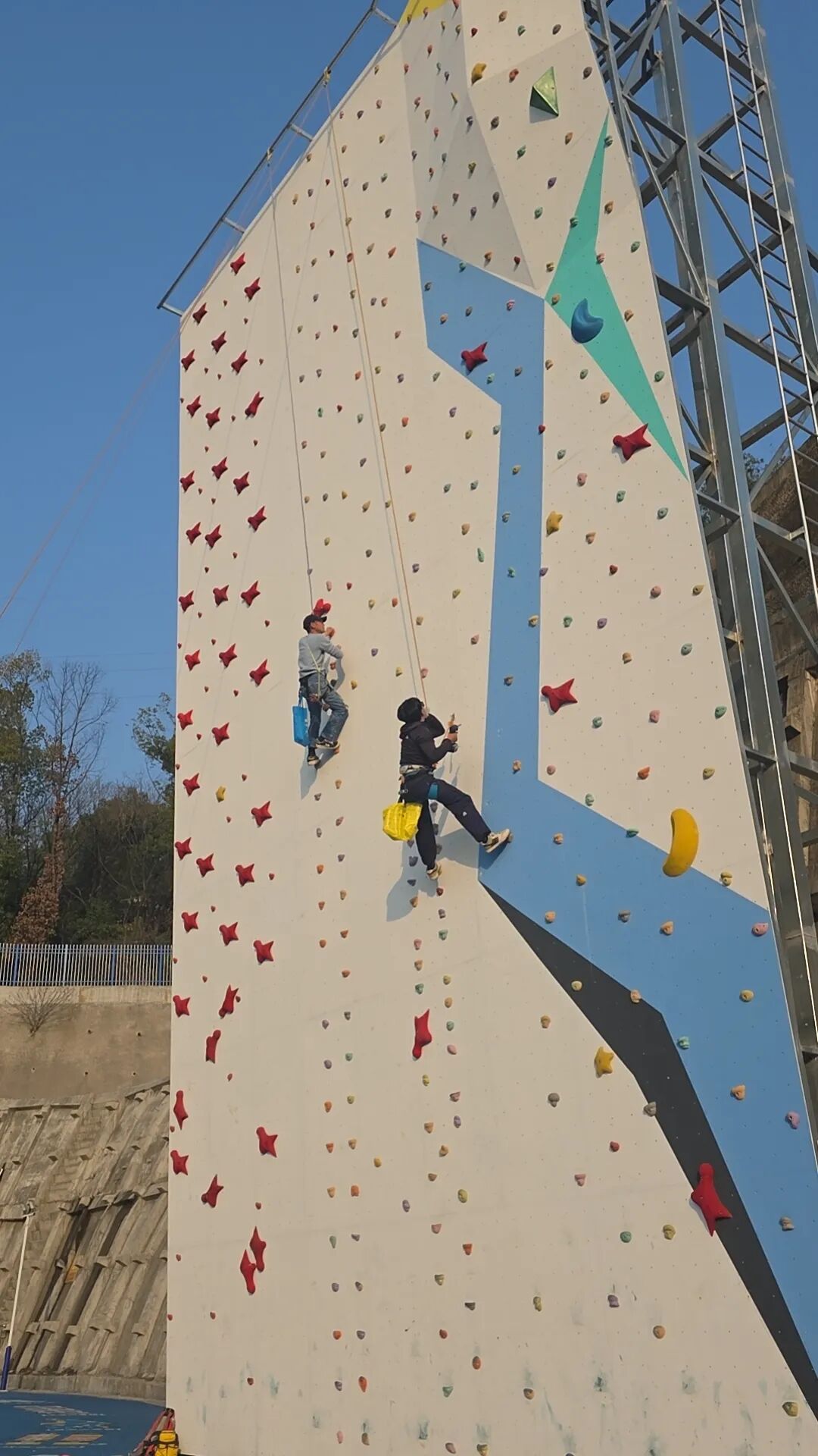 楠竹林小学校园改扩建期间,按国家级标准在校园里建起了一面高15米的室外攀岩墙,并顺利通过验收。