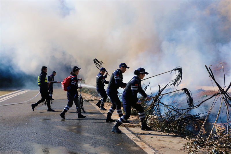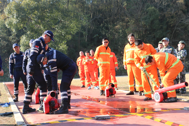 此次技能比武由水泵接力协同战术、风力灭火机操作两个项目组成,重点考核参赛人员对灭火装备的使用熟练度、团队协作能力和身体素质。参加比武的6支队伍随着裁判的一声令下,参赛队员立即进入状态,迅速铺展和接驳水带、组装水枪、启动水泵。比武过程各参赛队伍行动有序、配合默契,展现出了各队伍的良好精神风貌和娴熟的战术配合水平,检验了快速反应和应急作战能力。